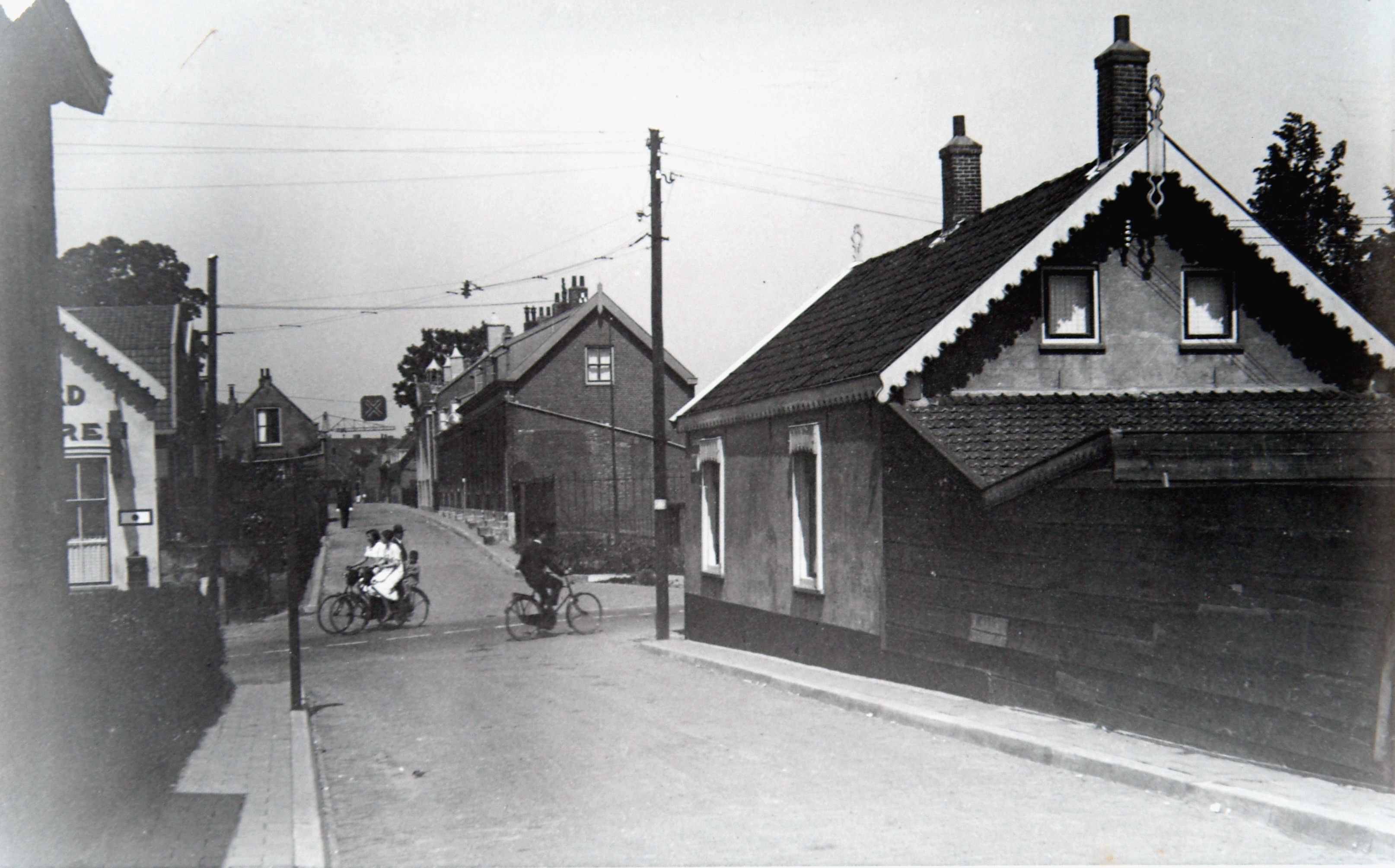 - Fietsers passeren de kruising Straatweg/Zuidendijk, kijkend in de Glazenstraat.