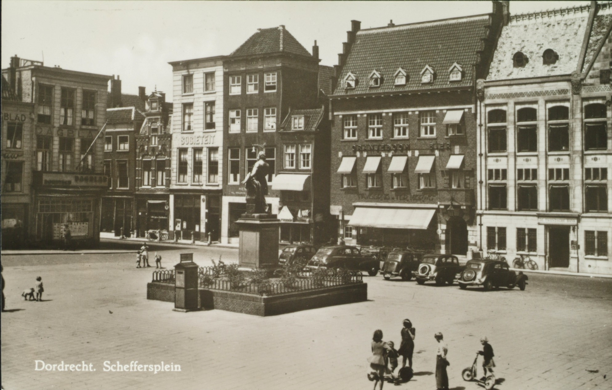 - Het Scheffersplein met het standbeeld van Ary Scheffer omstreeks 1937. Links de Groenmarkt..