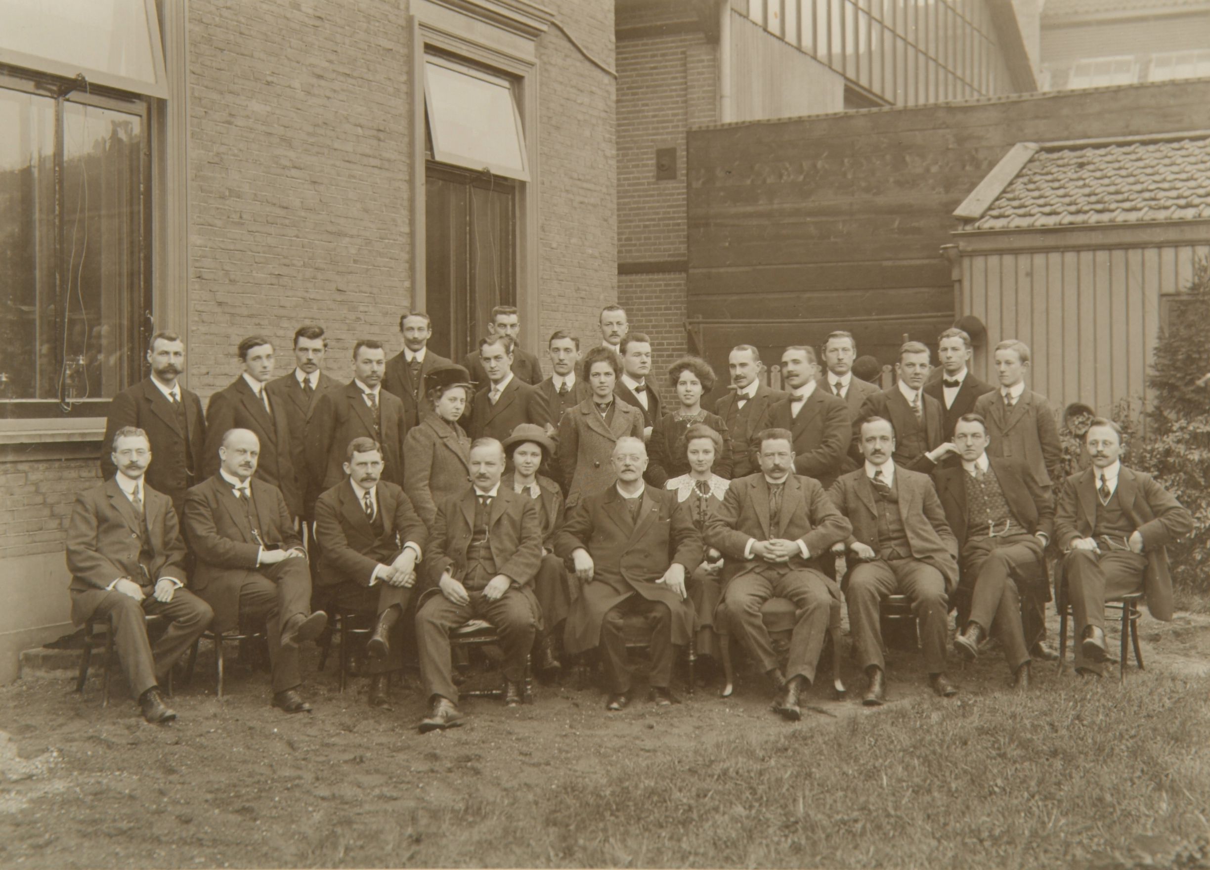 - Groepsportret van directie, administratief en technisch personeel van de Meterfabriek.