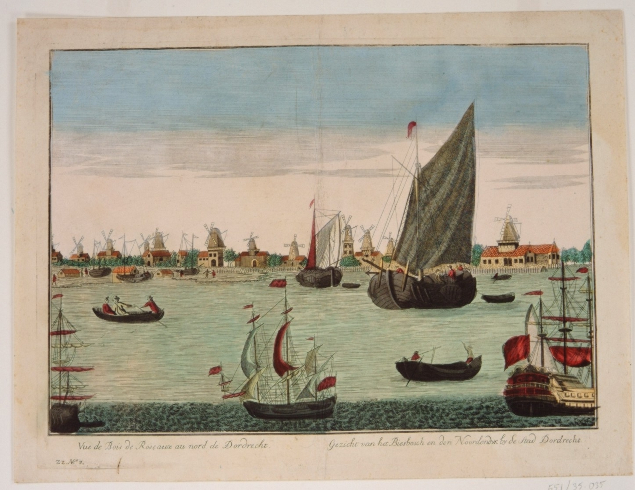 - Gezicht over Nieuwe Merwede op de molens aan de Noordendijk
