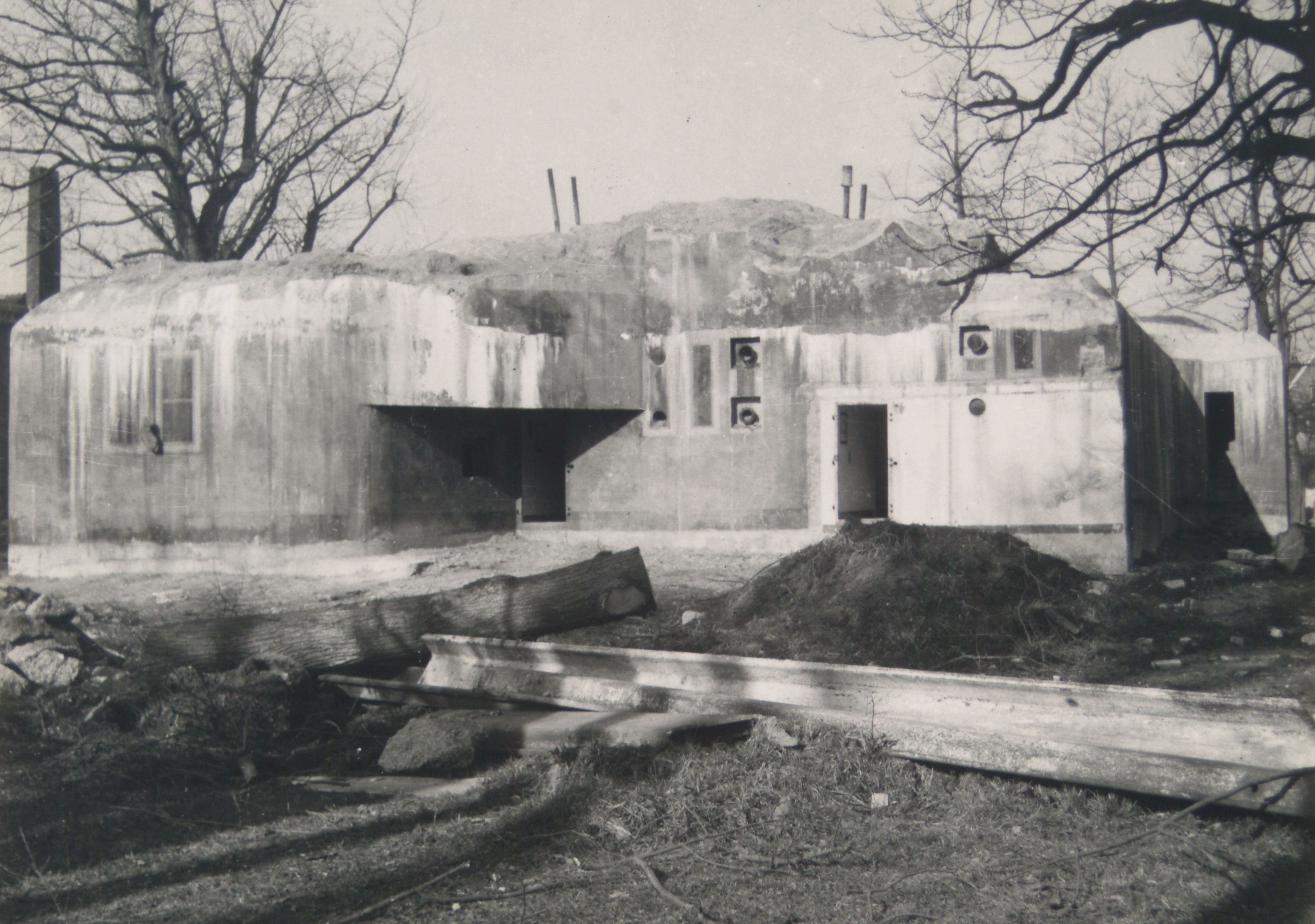 In Park Merwesteijn zijn in 1942 (met inzet van Nederlandse aannemers en Joodse gevangenen uit subkamp Moerdijk van Kamp Vught) vijf bunkers gebouwd. Zij dienden van 1942 tot september 1944 voor het onderbrengen van de generale staf van de 719e Infanterie Division. Dit legeronderdeel was belast met de bouw en bemanning van de Atlantikwal in de sector tussen Goeree-Overflakkkee en Den Haag. De bunkers dienden alleen als onderkomen tijdens krijgshandelingen, normaal verbleef de operationele staf in barakken die naast de bunkers werden opgericht, in School Muhring, de HBS en gevorderde villa's aan de Vrieseweg en De Singel. Er zijn 4 verschillende type bunkers in het park gebouwd, allen in de zwaarste (STandige) uitvoering van 3 a 4 meter dik beton: Twee stuks R 608: gefechtstand voor de Generale staf van de divisie en Gefechtstand voor het 723e Infanterie Regiment; R 610: Gefechtstand voor het 743e Grenadier Regiment; R 622: Doppelgruppen Unterstand (Personeelsonderkomen R 618: Nachrichtenstand (telecommunicatiecentrum) voor de 719e Nachrichten Abteilung. Tevens zijn in het park en achter School Muhring betonnen bergplaatsen en schuilkelders gebouwd. De barakken en het manschappencasino in de villa zijn bij het bombardement op het (toen al door de 719E ID. verlaten) hoofdkwartier in september 1944 verwoest dan wel zwaar beschadigd. In 1946 zijn in het kader van een tewerkstellingsproject van werklozen de bunkers en overige werken in het park handmatig gesloopt en geruimd. De foto geeft een beeld van deze werkzaamheden. Het vrijgekomen puin is grotendeels gebruikt voor de fundering van de paden in het Weizigtpark. Plattegronden van de bunkers en werken hangen in Museum 1940-1945 aan de Nieuwe Haven.