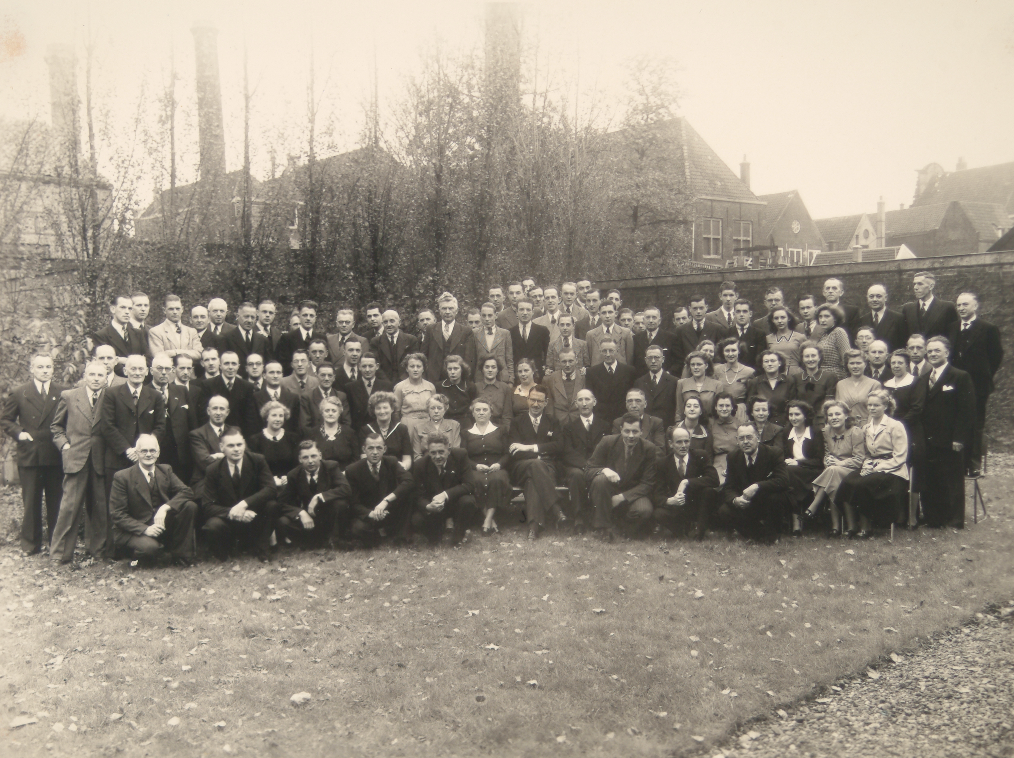 - Groepsportret van het personeel van de Raad van Arbeid en het Gemeenschappelijk Administratie Kantoor (GAK)