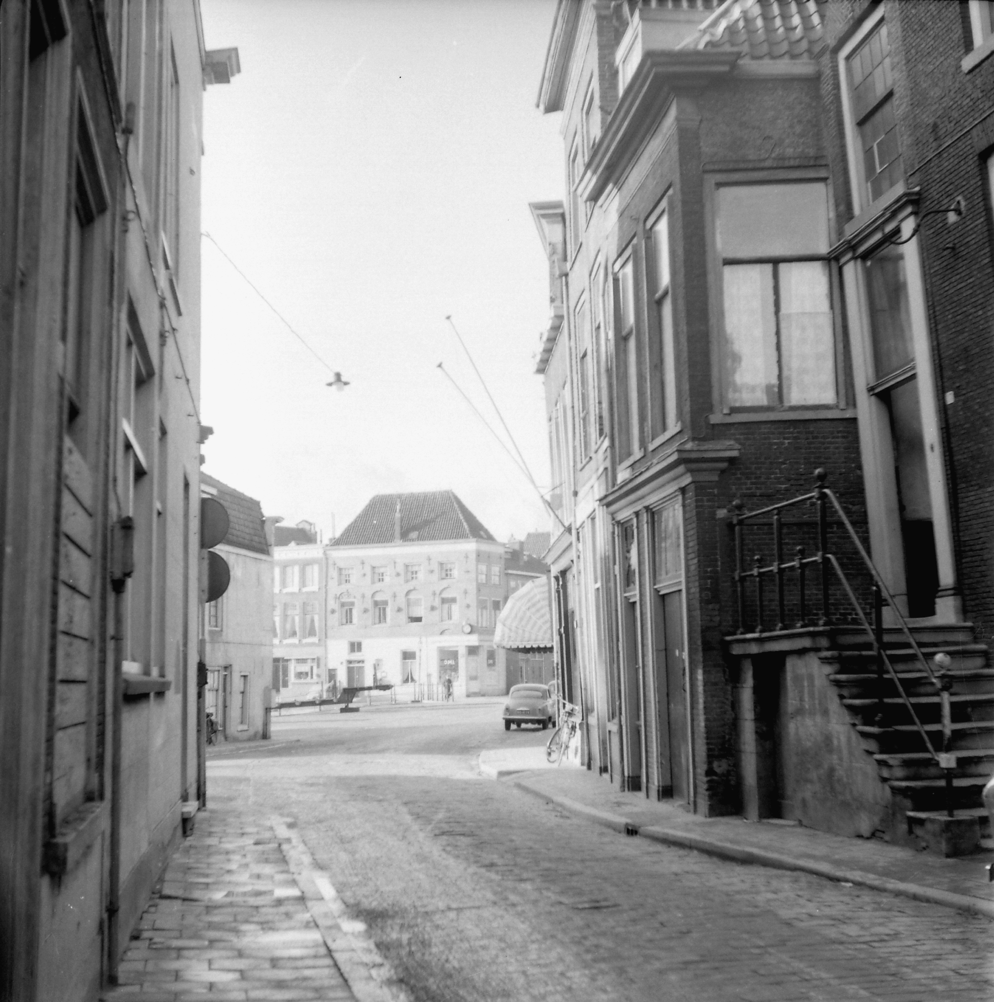 - Gravenstraat richting het Vlak met de Nieuwe Haven. De zijstraat is de Varkenmarkt