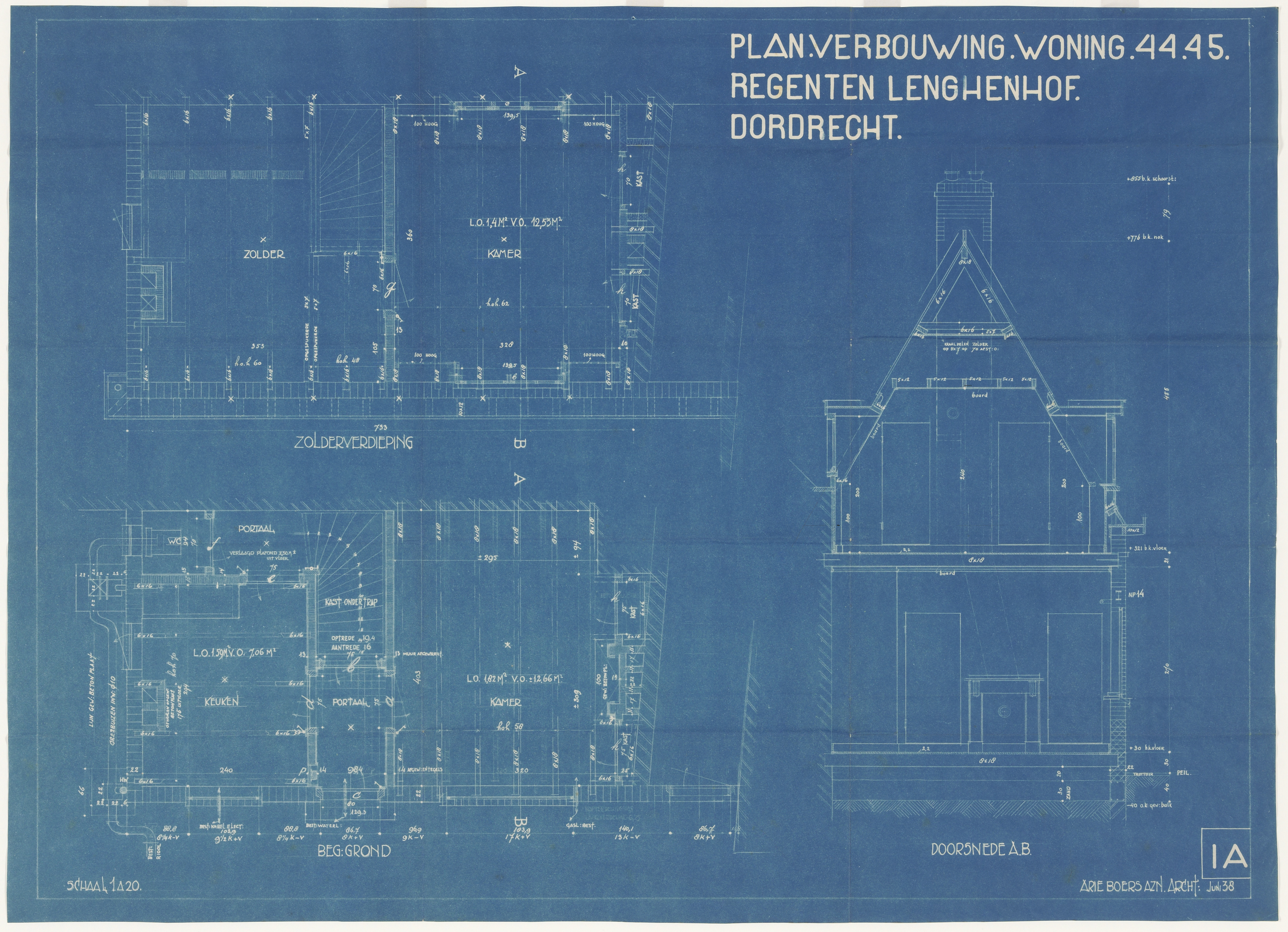 - Verbouwingsplan van de woningen in de Lenghenhof nrs. 44 en 45.