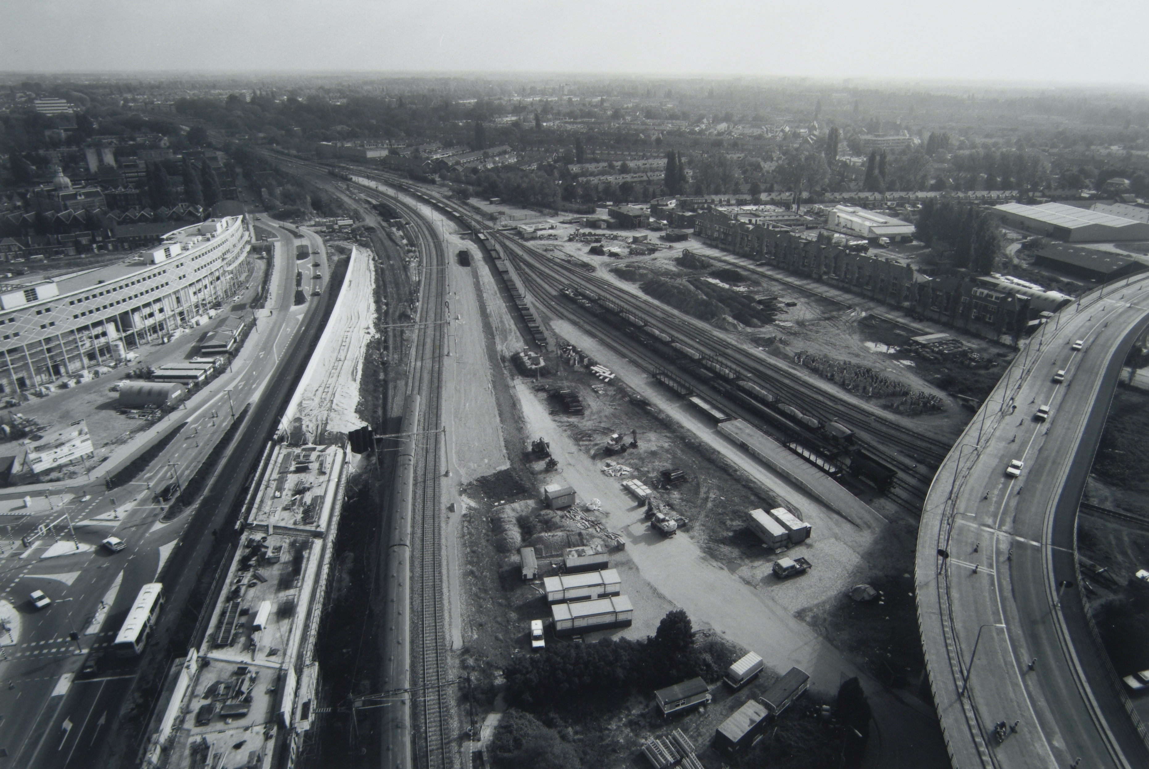 - Panorama vanaf de Zwijndrechtse spoorbrug, in aanbouw, over de Oude Maas. Gezien naar Maasplaza aan spoorwegemplacement