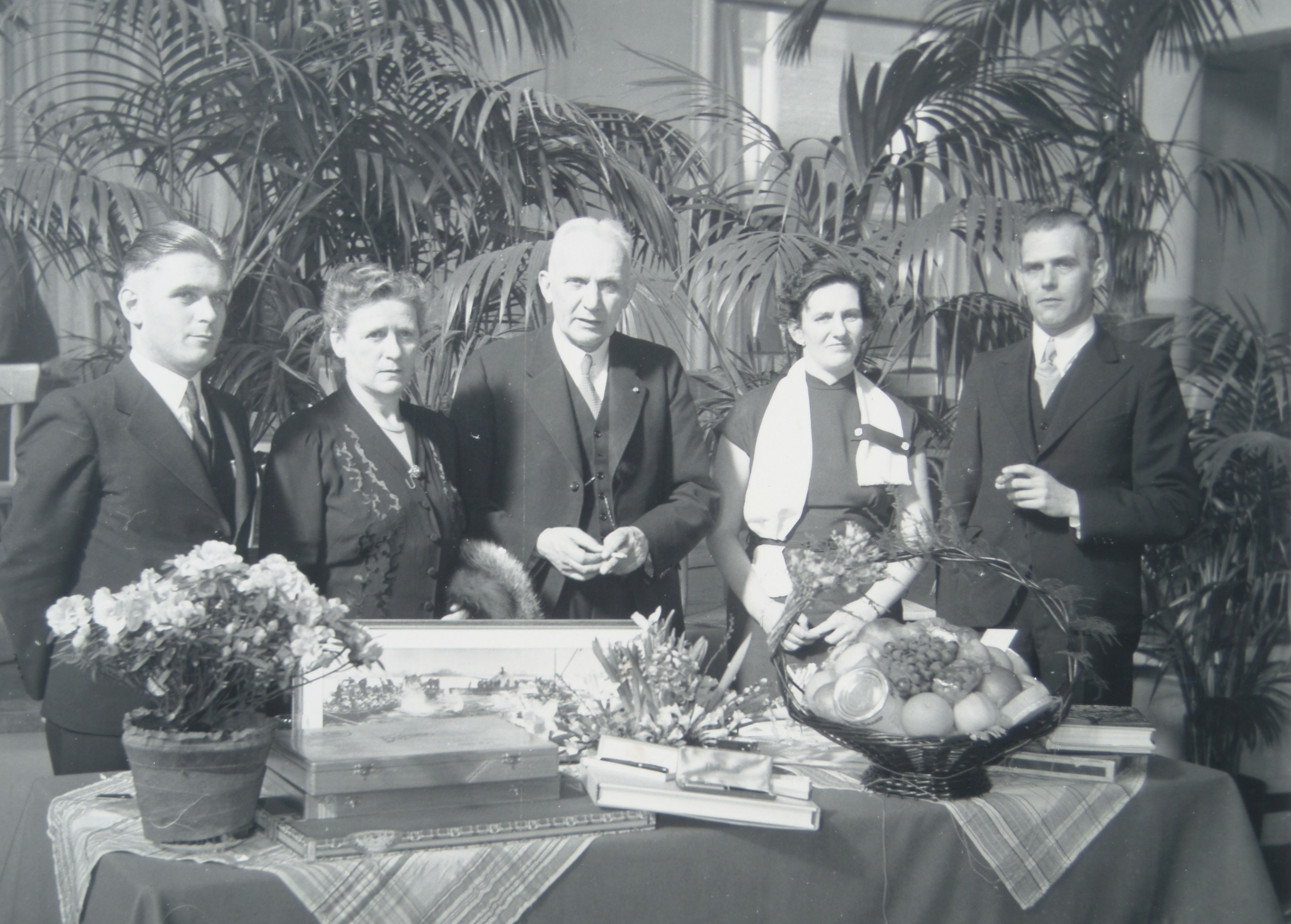 - Groepsportret t.g.v. het afscheid van ir. Versteeg, directeur gemeentewerken, met zijn familie