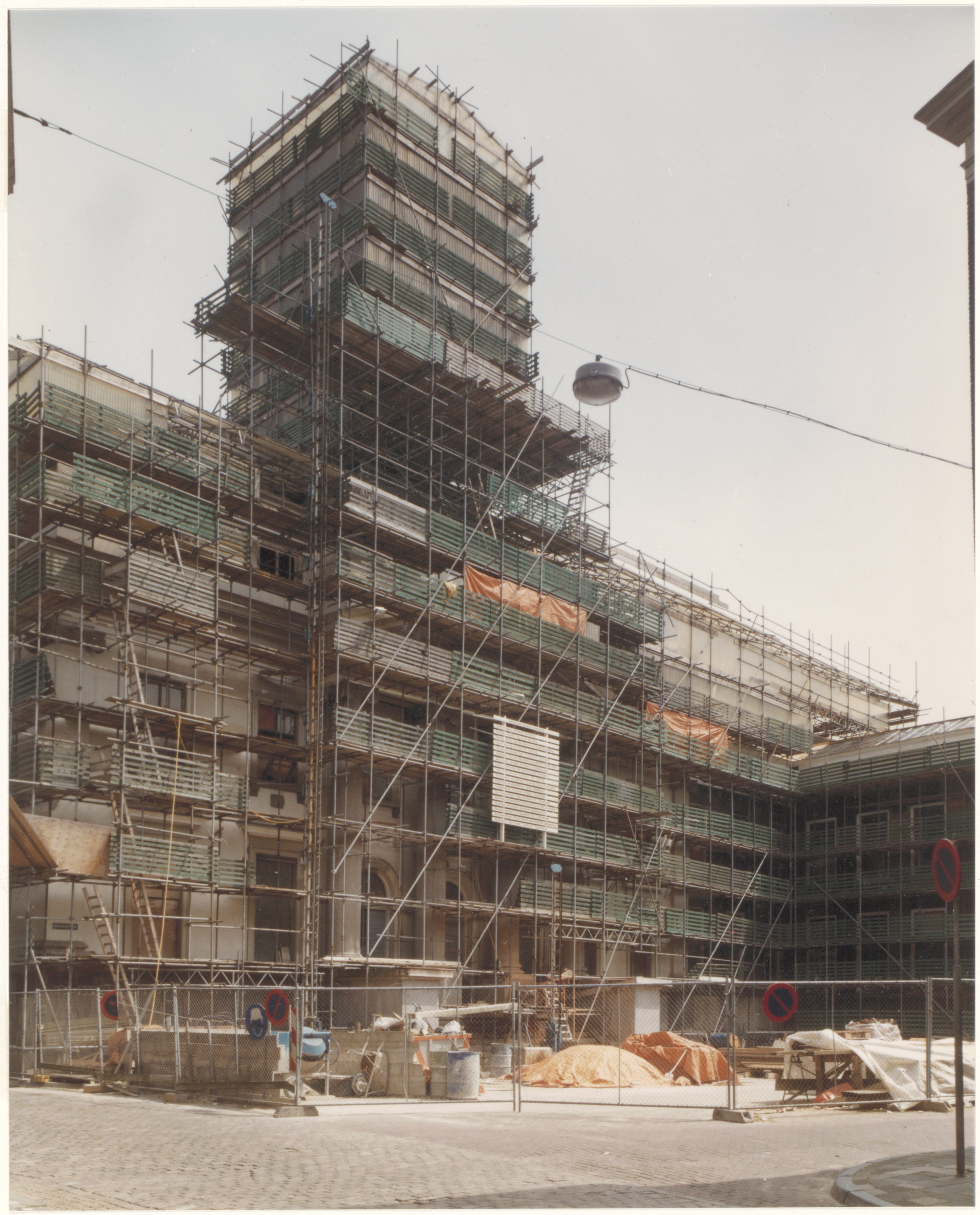 Het stadhuis in de steigers tijdens de restauratie van 1980 tot 1986; foto in …