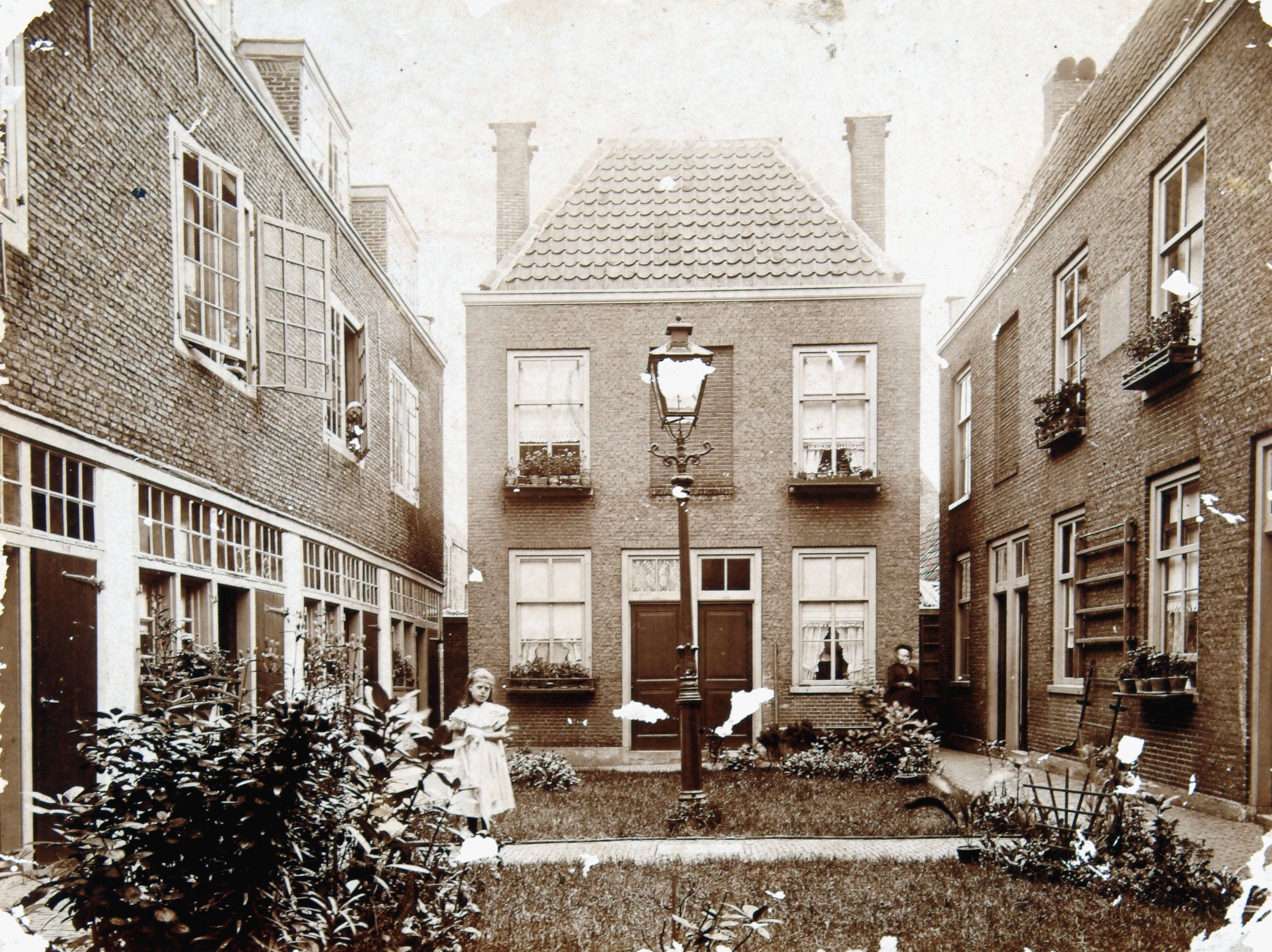 De Van Slingelandtshof aan de noordzijde van de Vriesestraat, destijds tussen Dwarsgang …
