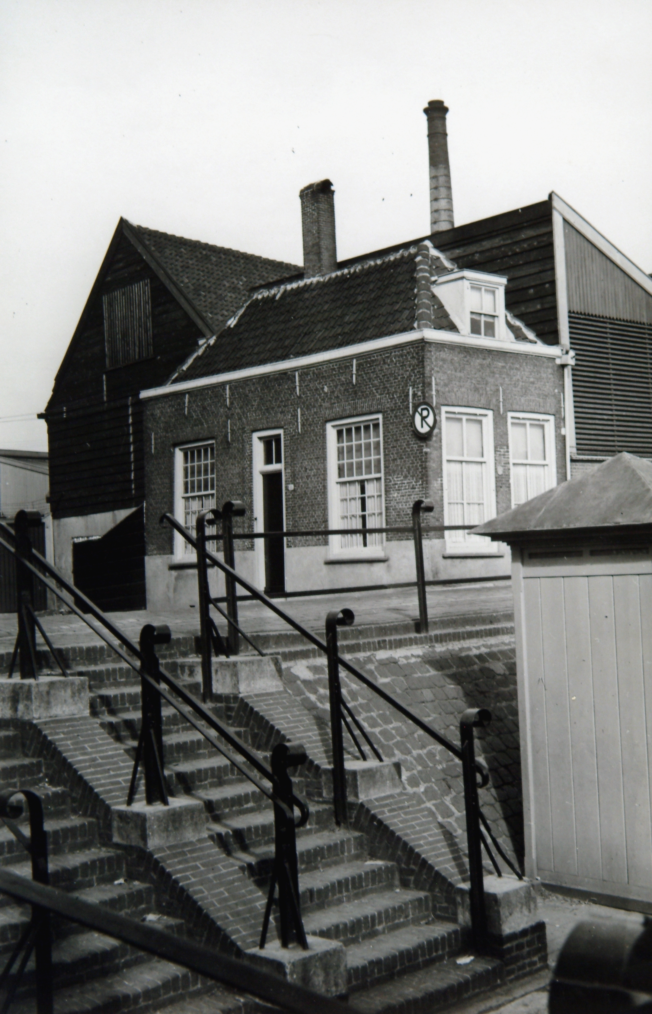 - Gezicht op de Sluisweg bij de trap naar het Geldelozepad. Rechts van de trap staat een slangenhuisje van de brandweer.