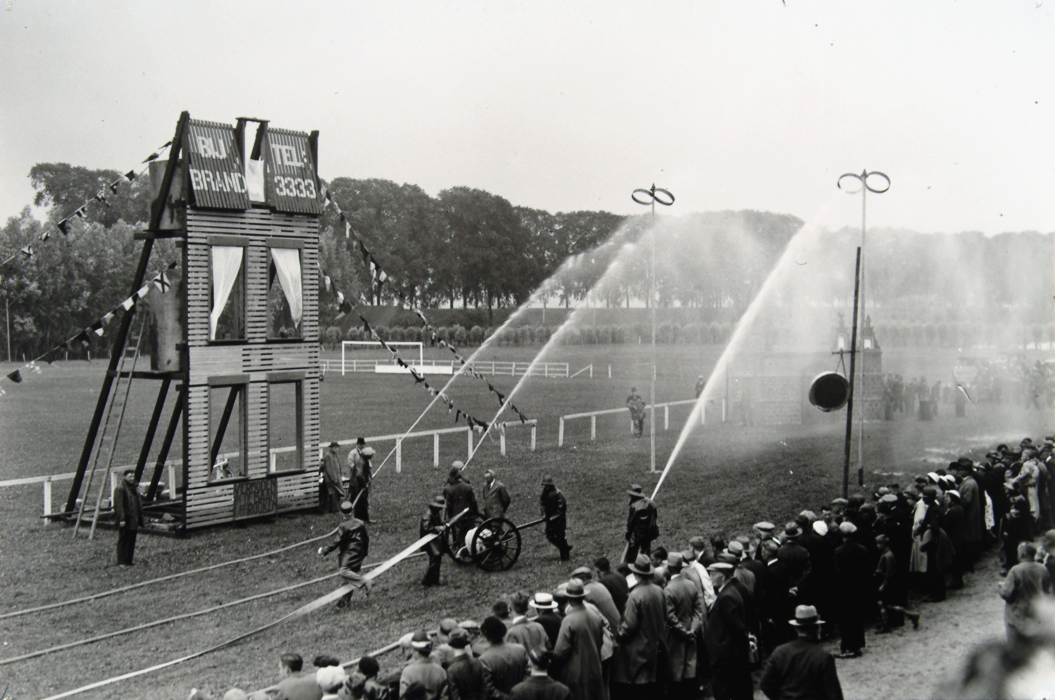 - Brandweeroefeningen op het Sportpark aan de Reeweg. Op de achtergrond de Noordendijk.