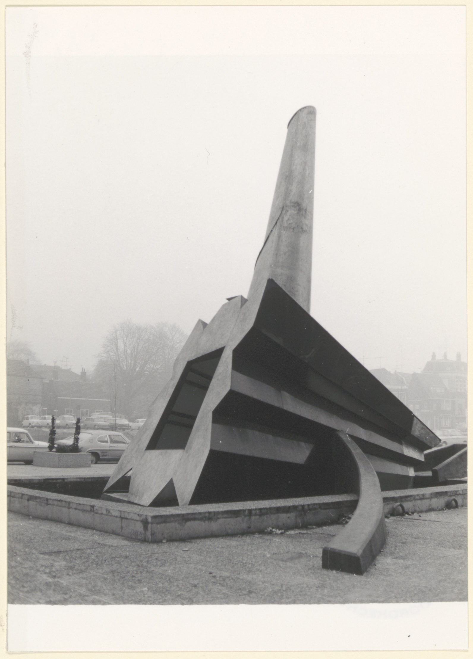 - Sculptuur met fontein voor het stadskantoor aan de Spuiboulevard.