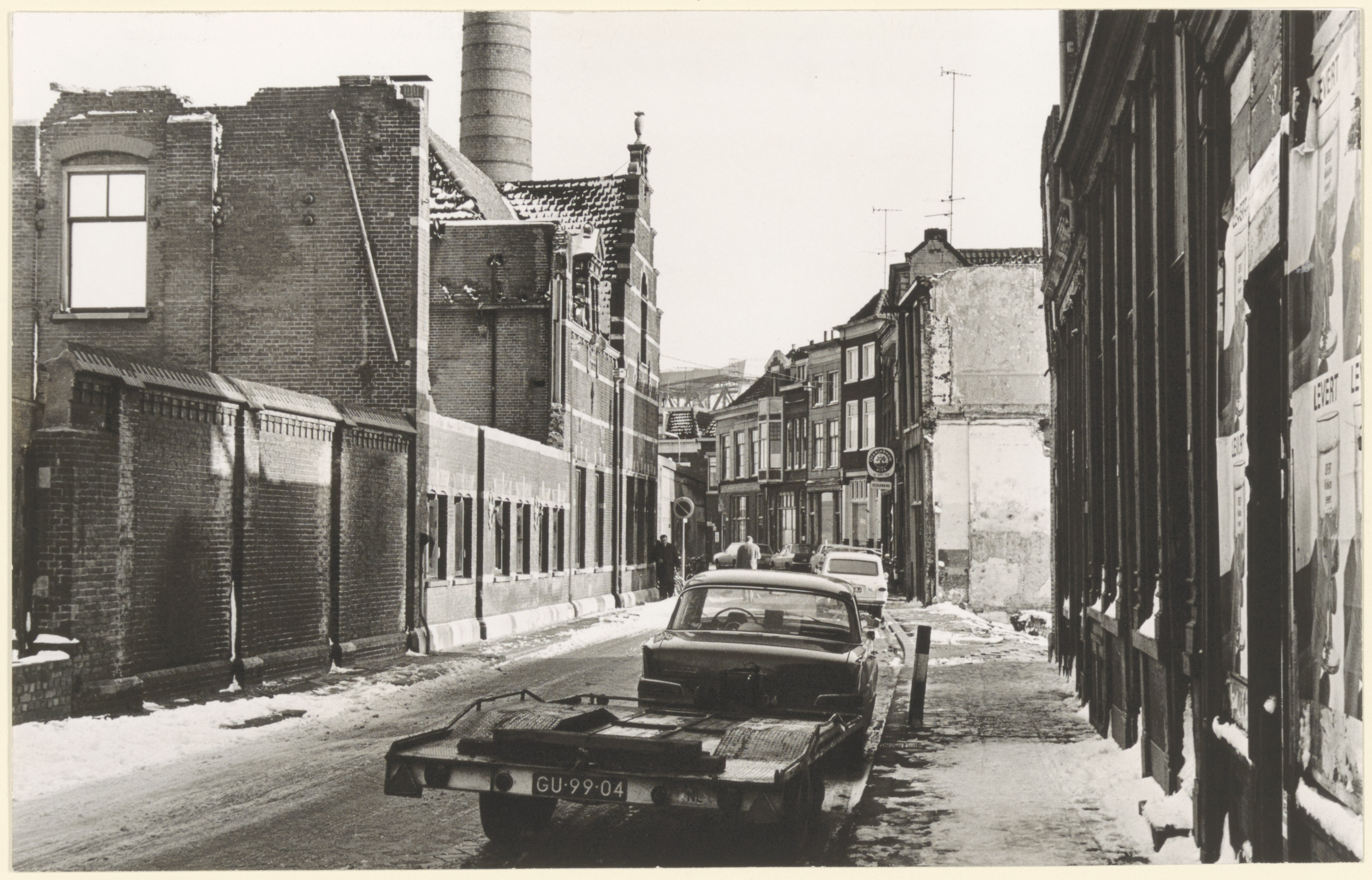 De Riedijk in oostelijke richting, ter hoogte van de gasfabriek (links) in afbraak.