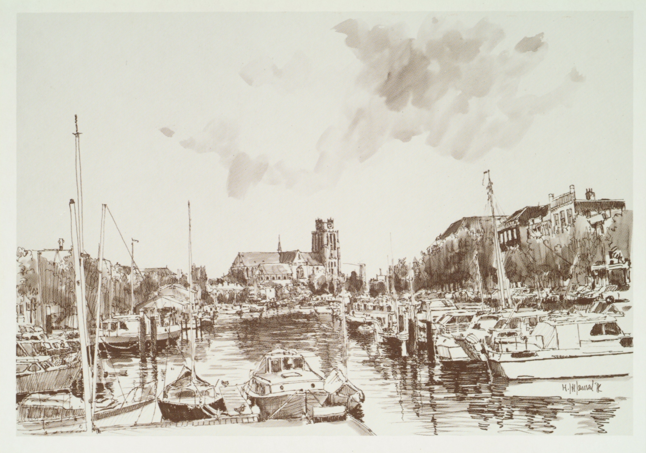 - Nieuwe Haven met zicht op Grote Kerk. De toren van de kerk is 72 meter hoog en heeft een beiaard van 49 klokken. (na uitgave van deze kaart is de beiaard uitgebreid).