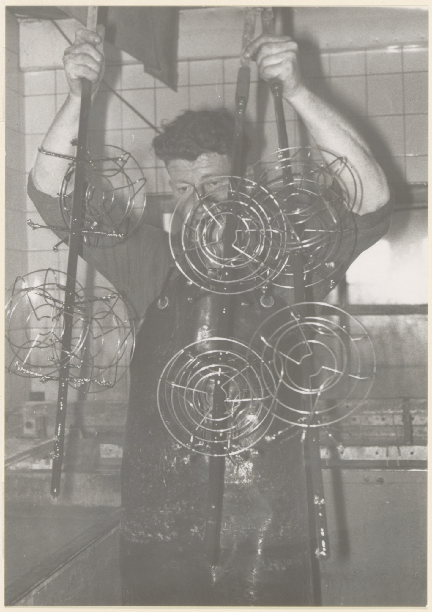 Een arbeider in de verzinkerij van de Tomado-fabriek aan de Rotterdamseweg bij de Laurensvliet te Zwijndrecht.