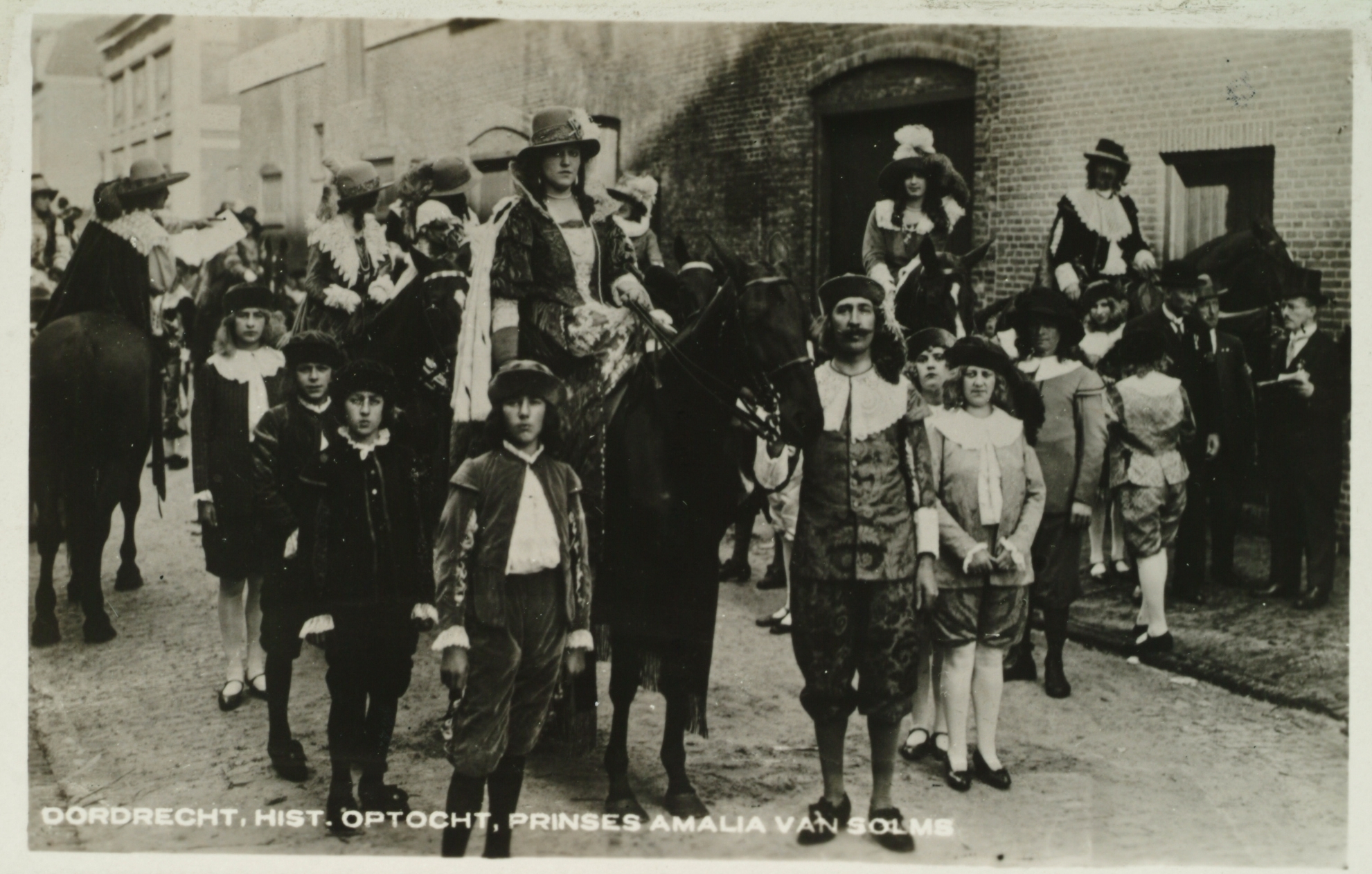 - Historische optocht op de Buiten Walevest n.a.v. de opening van de Zeehaven. Prinses Amalia van Solms en haar begeleiders, nagespeeld door Dordtenaren.