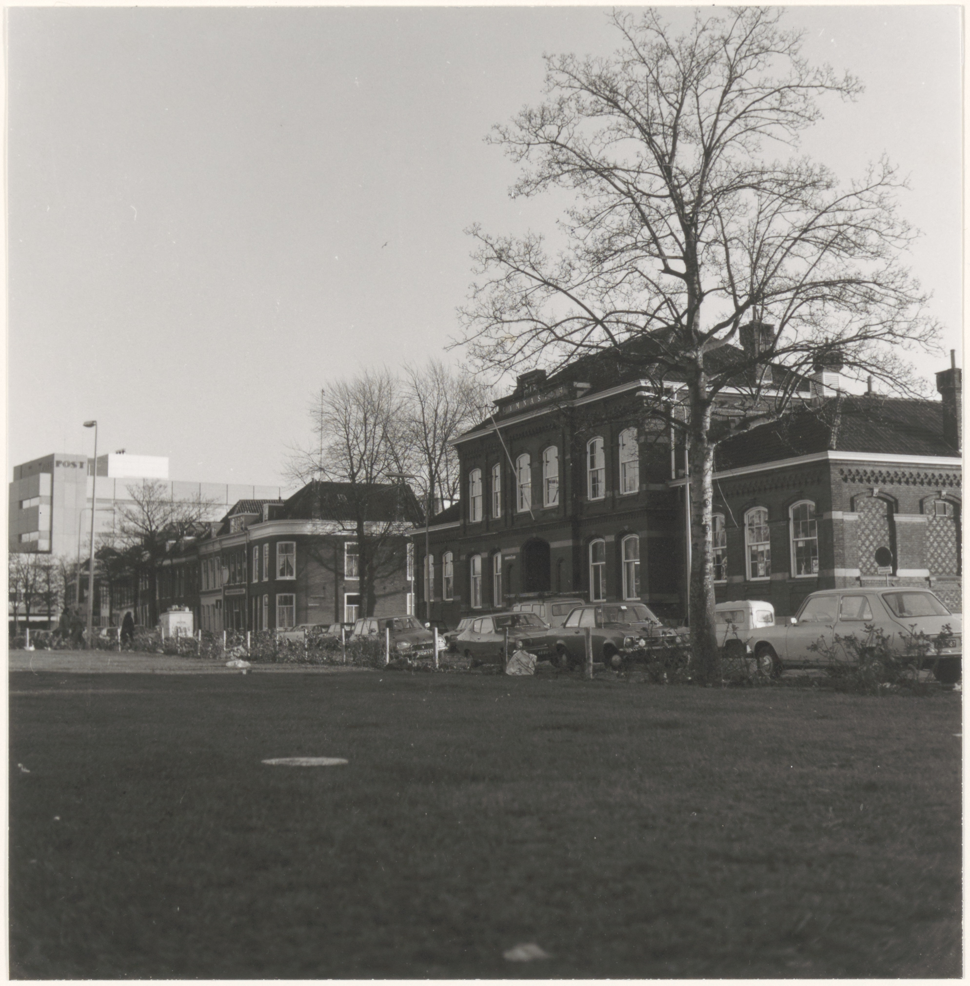 - De Cornelis de Wittstraat gezien naar het oosten in de richting van het postkantoor aan de Johan de Wittstraat; rechts het gymnasium.
