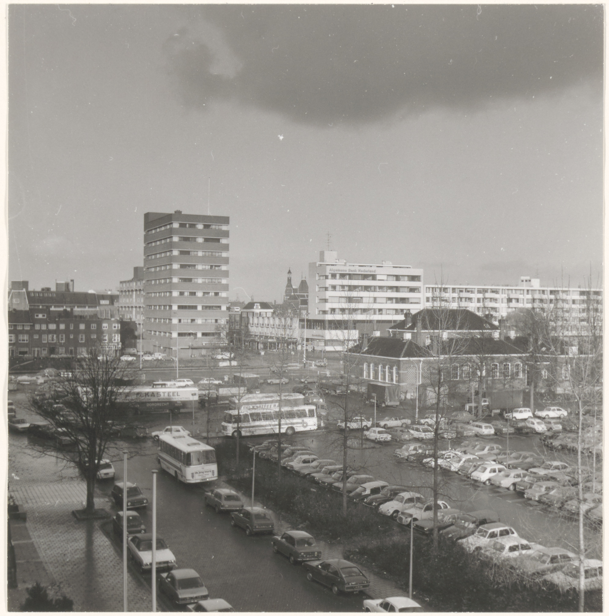 - Gezicht vanaf het gebouw van het GAK op de Van Godewijckstraat en het Beverwijcksplein; op de achtergrond de Spuiboulevard en het Achterom.