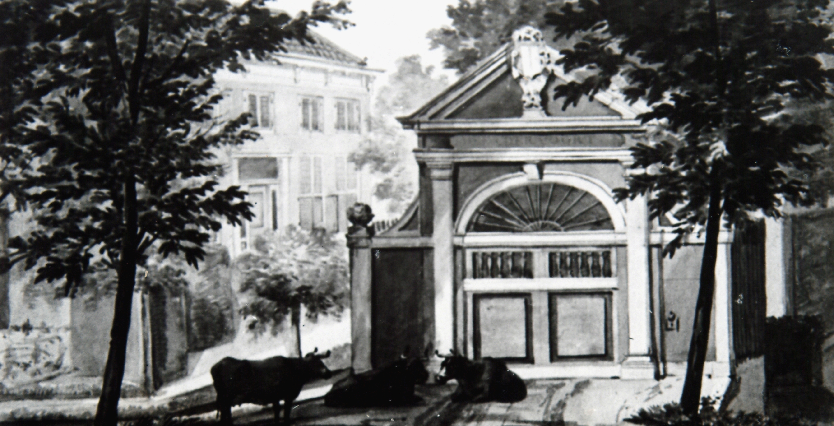 Het huis te Meerdervoort, Zwijndrecht. Tekening in kleur door A. Schouman(25x13 cm). In …
