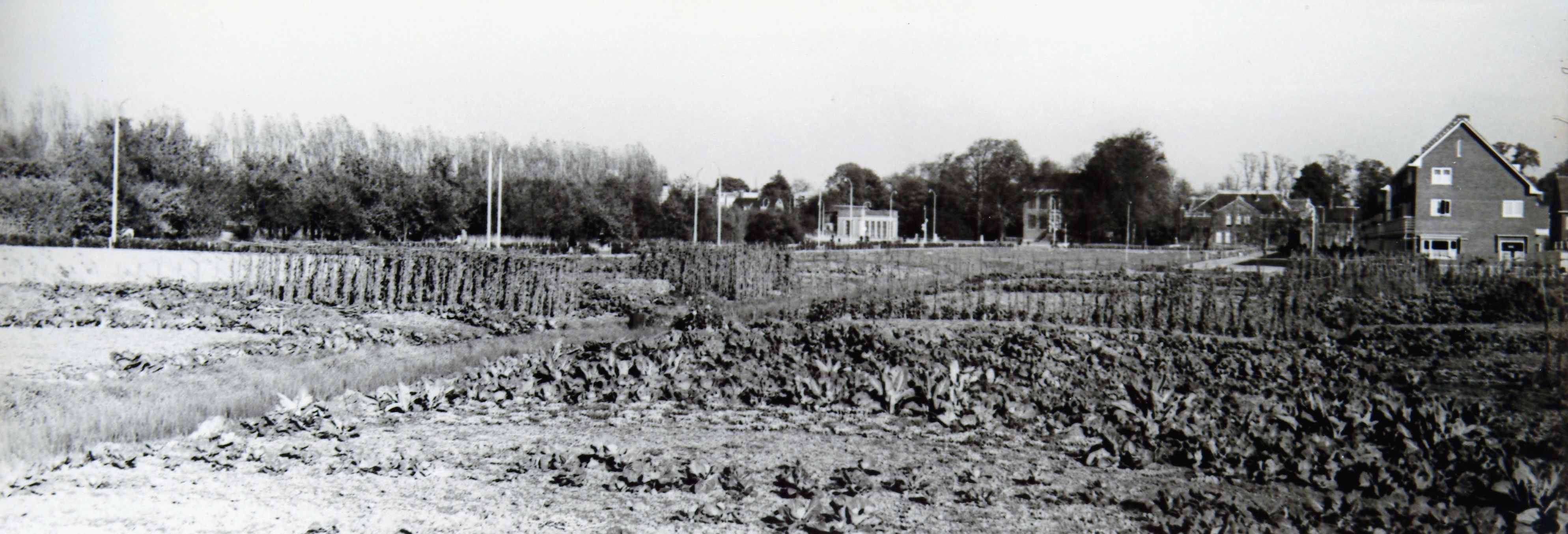Omgeving van de Hugo de Grootlaan en de Van Baerlestraat (rechts), gezien vanaf de Brouwersdijk. Op de achtergrond villa Weizigt en het koetshuis.