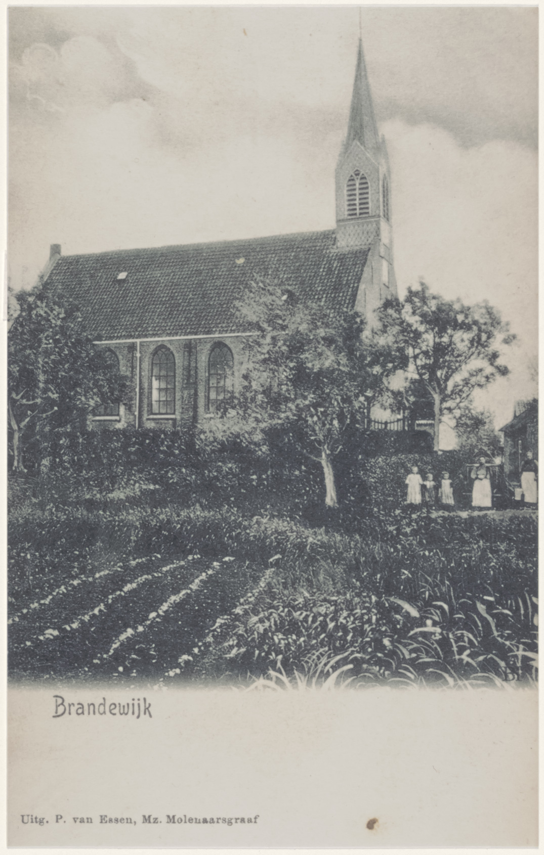 De noordwestelijke kant van de Hervormde Kerk aan de Brandwijksedijk in Brandwijk.