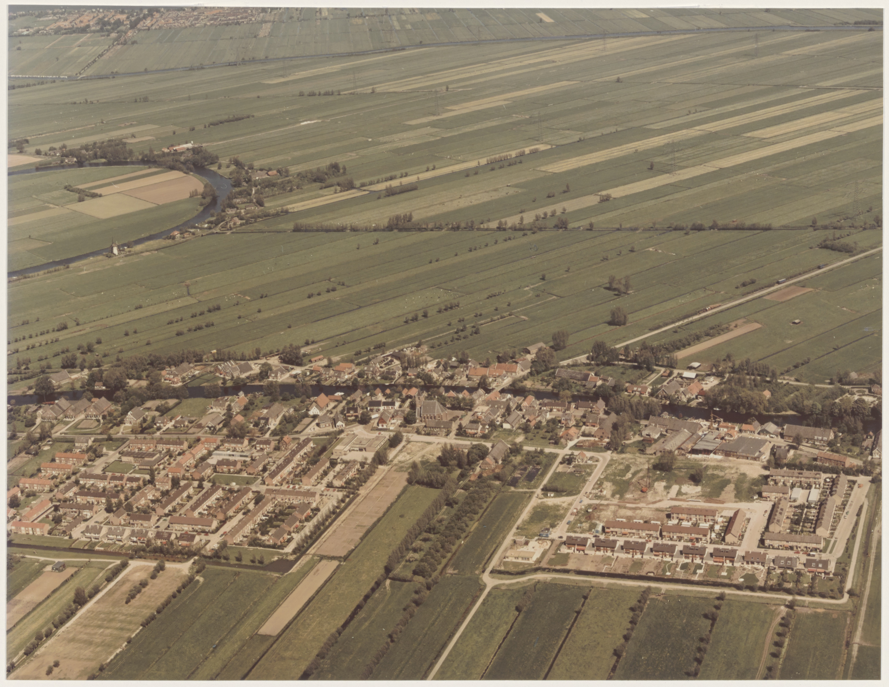 - Luchtfoto van Oud-Alblas naar het noorden gezien. Rechtsonder de Beemdweg Oost.