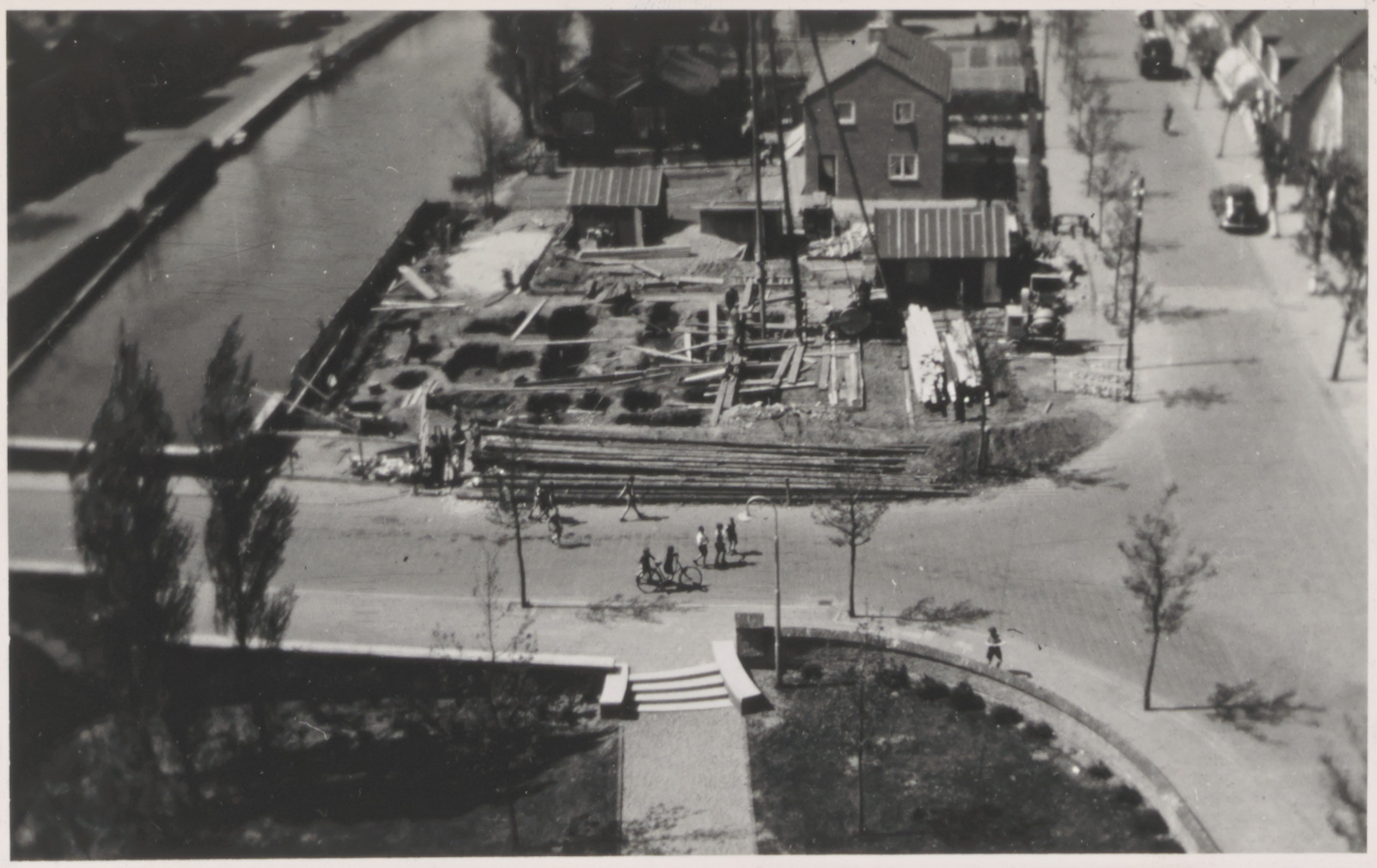 Heien voor de bouw van het gemeentehuis metlinks de Graafstroom en rechts de Kerkstraat in Bleskensgraaf.