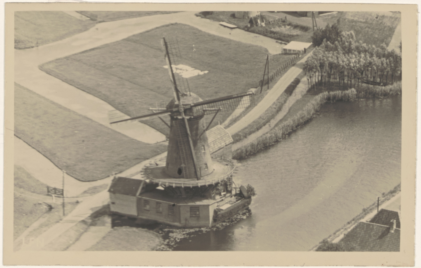 - Luchtfoto van molen De Vriendschap aan de Heulenslag in Bleskensgraaf.