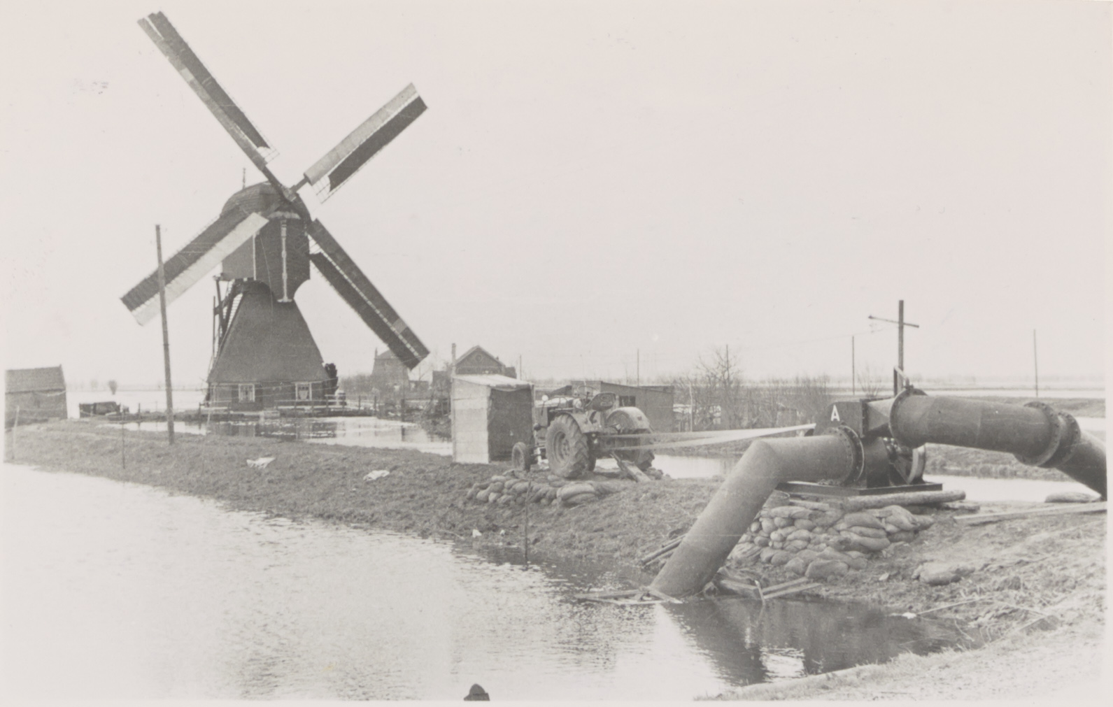 - Wingerdse Molen aan de Abbekesdoel in Bleskensgraaf tijdens de watersnood.