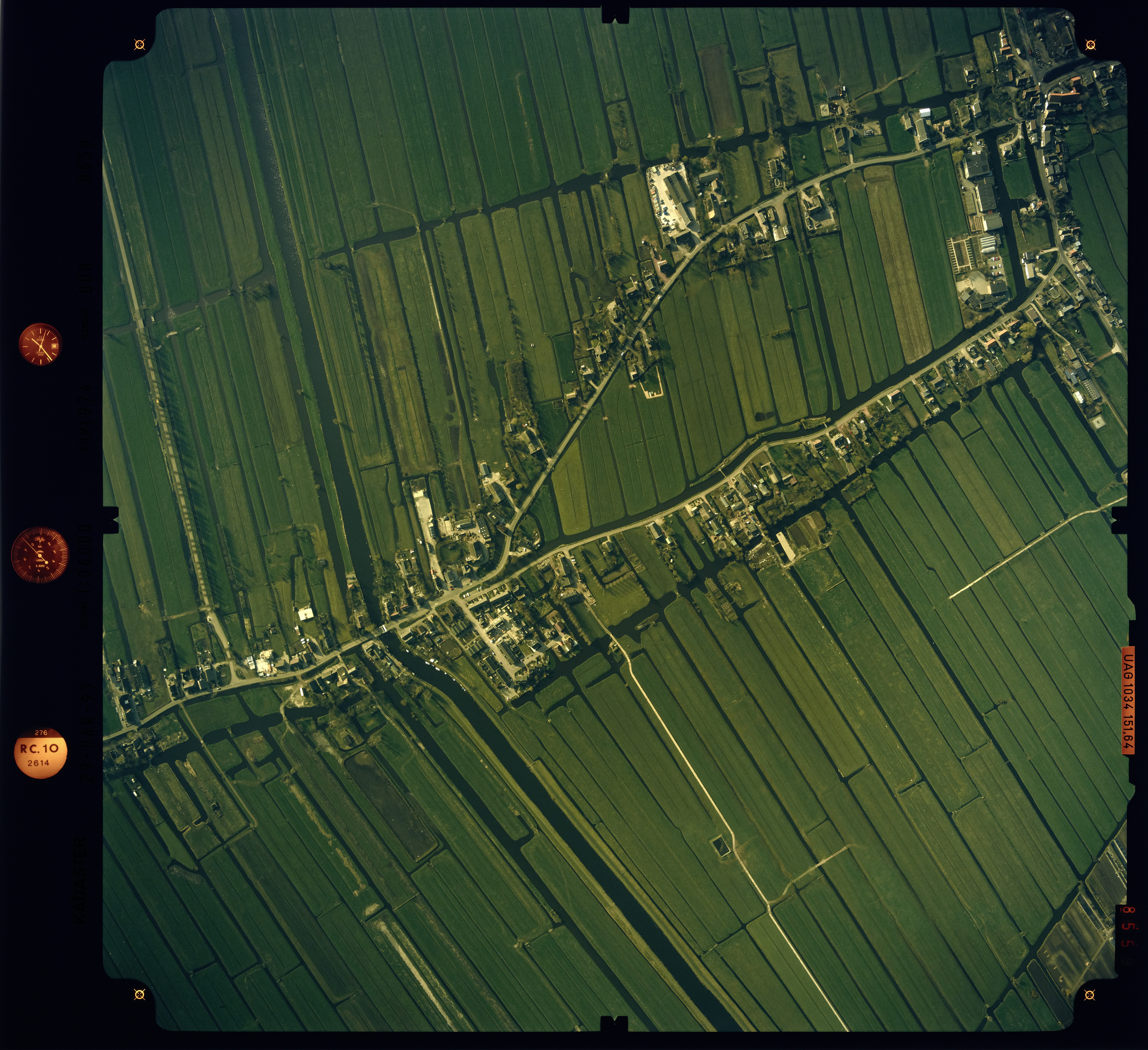 Luchtfoto Ottoland 1993. Midden onder naar Links boven Ottolandse Vliet. Midden links A overgaand naar rechts onder A en B. gezien in zuidelijke richting.