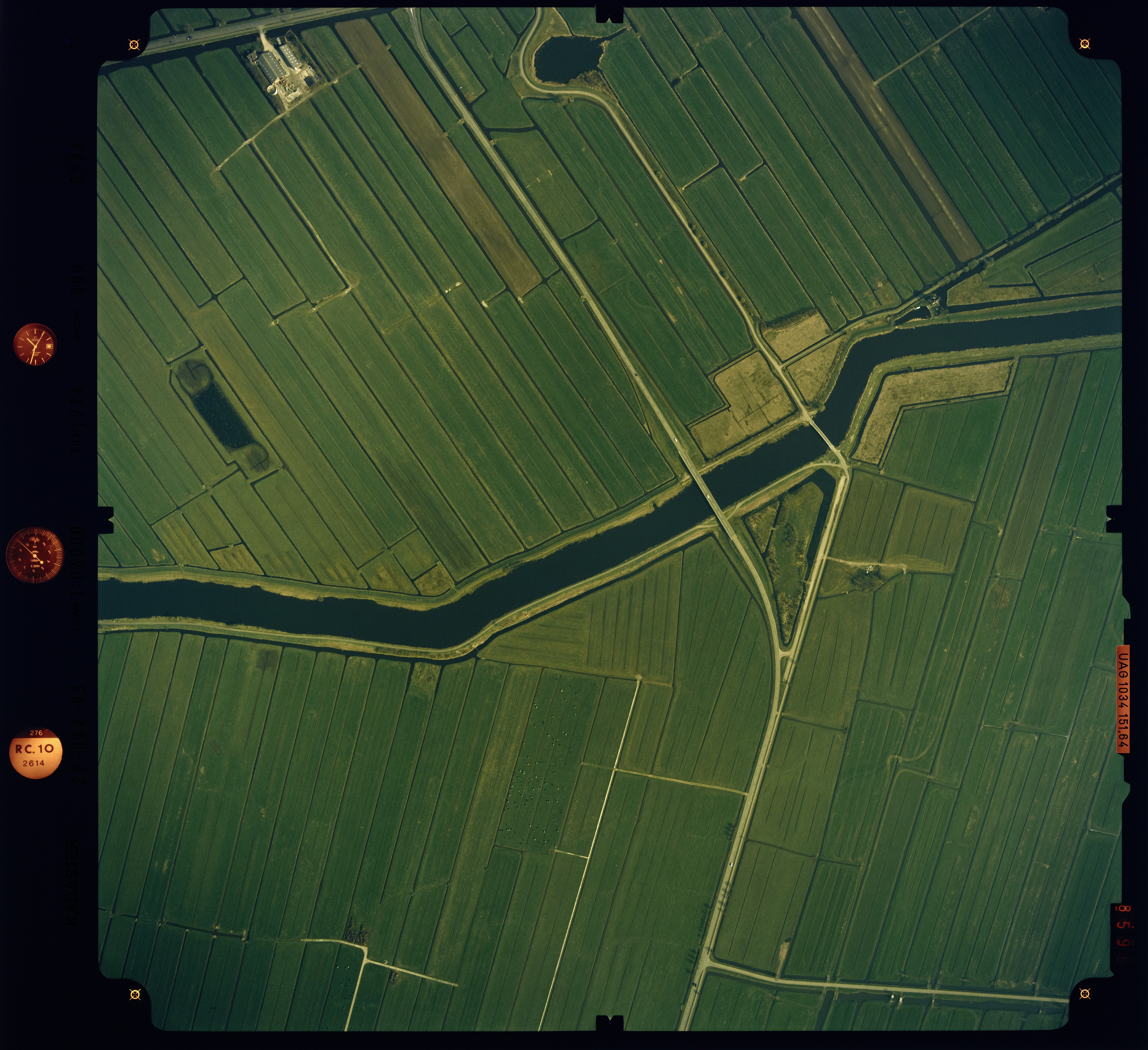 Luchtfoto thv Zijdebrug 1993. Midden onder naar midden boven N481 en de Zijdeweg. Rechts onder Geerweg. Midden links naar midden rechts Groote of Achterwaterschap. Links boven Schoonenburgerweg. gezien in noordelijke richting.