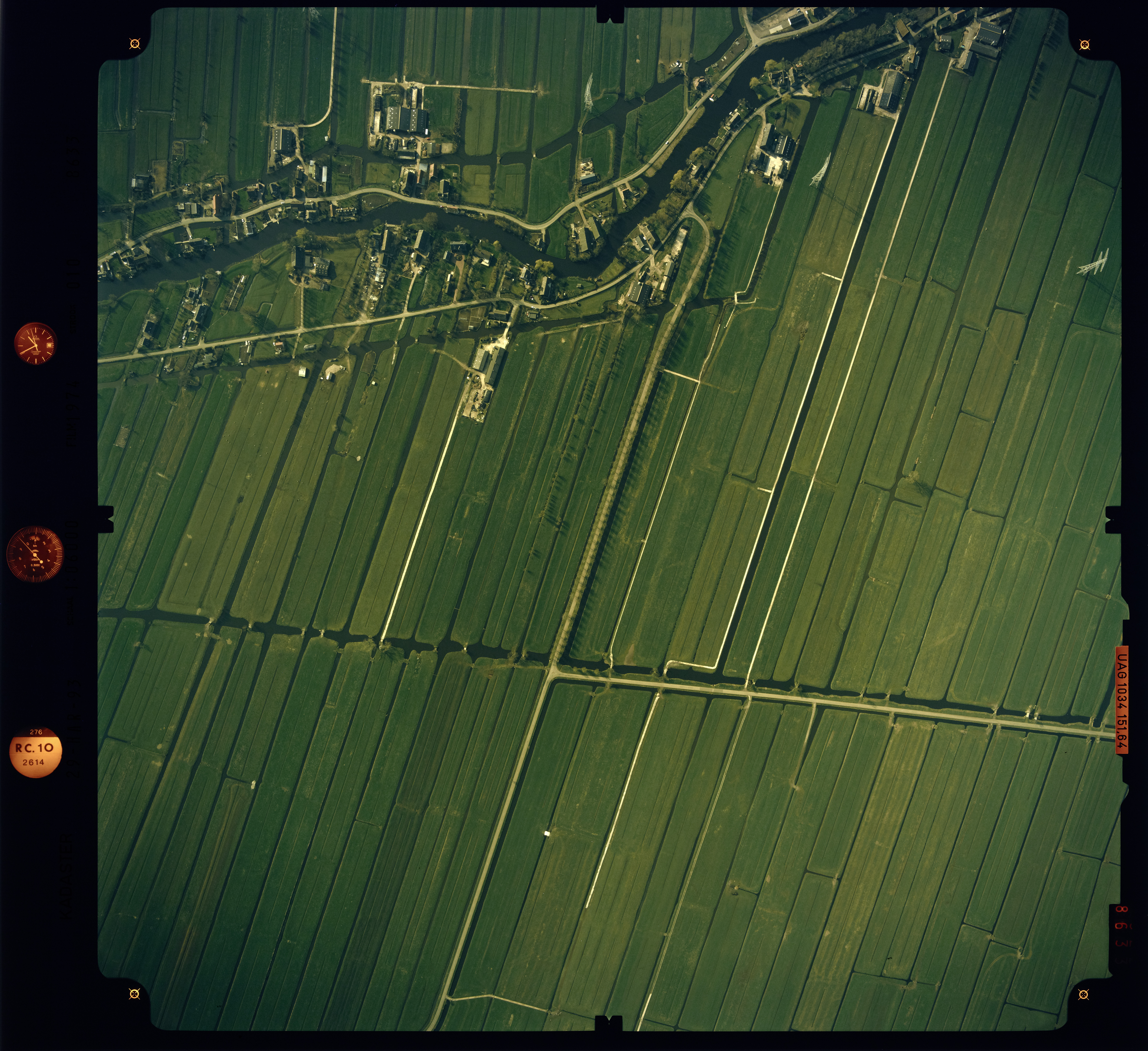 Luchtfoto bij Bleskensgraaf. 1993. Midden rechts naar links Geerweg. Midden onder naar boven Geerweg overgaand in Korte Geer. Links boven naar rechts boven De Alblas met Abbekesdoel er boven en heulenslag er onder. gezien in zuidelijke richting.