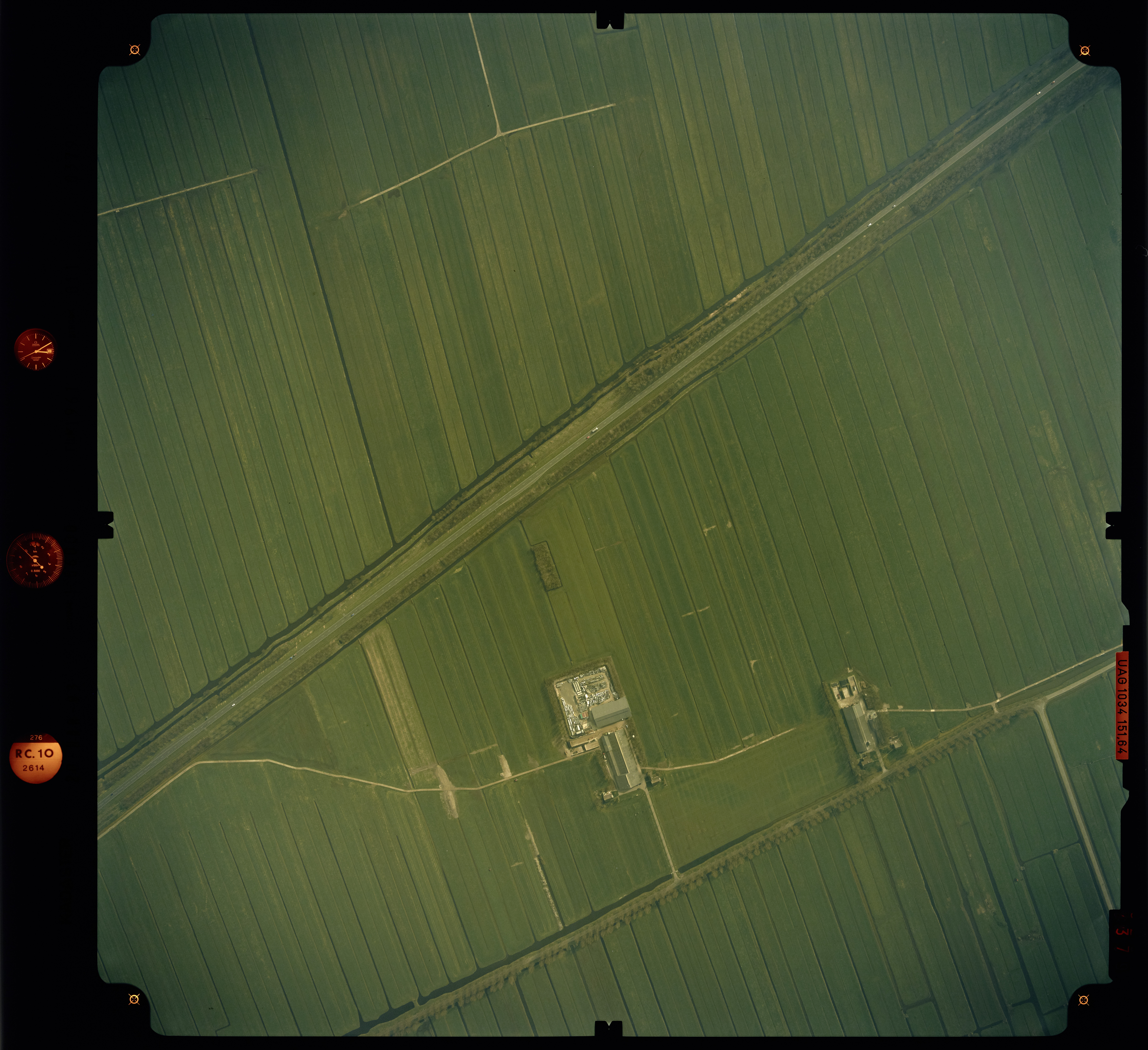 Luchtfoto Molenaarsgraaf 1993: Links onder naar rechts boven Prov.weg N214. Midden onder naar rechts Kweldamweg. Rechts onder Polderweg oost. gezien in zuidelijke richting.