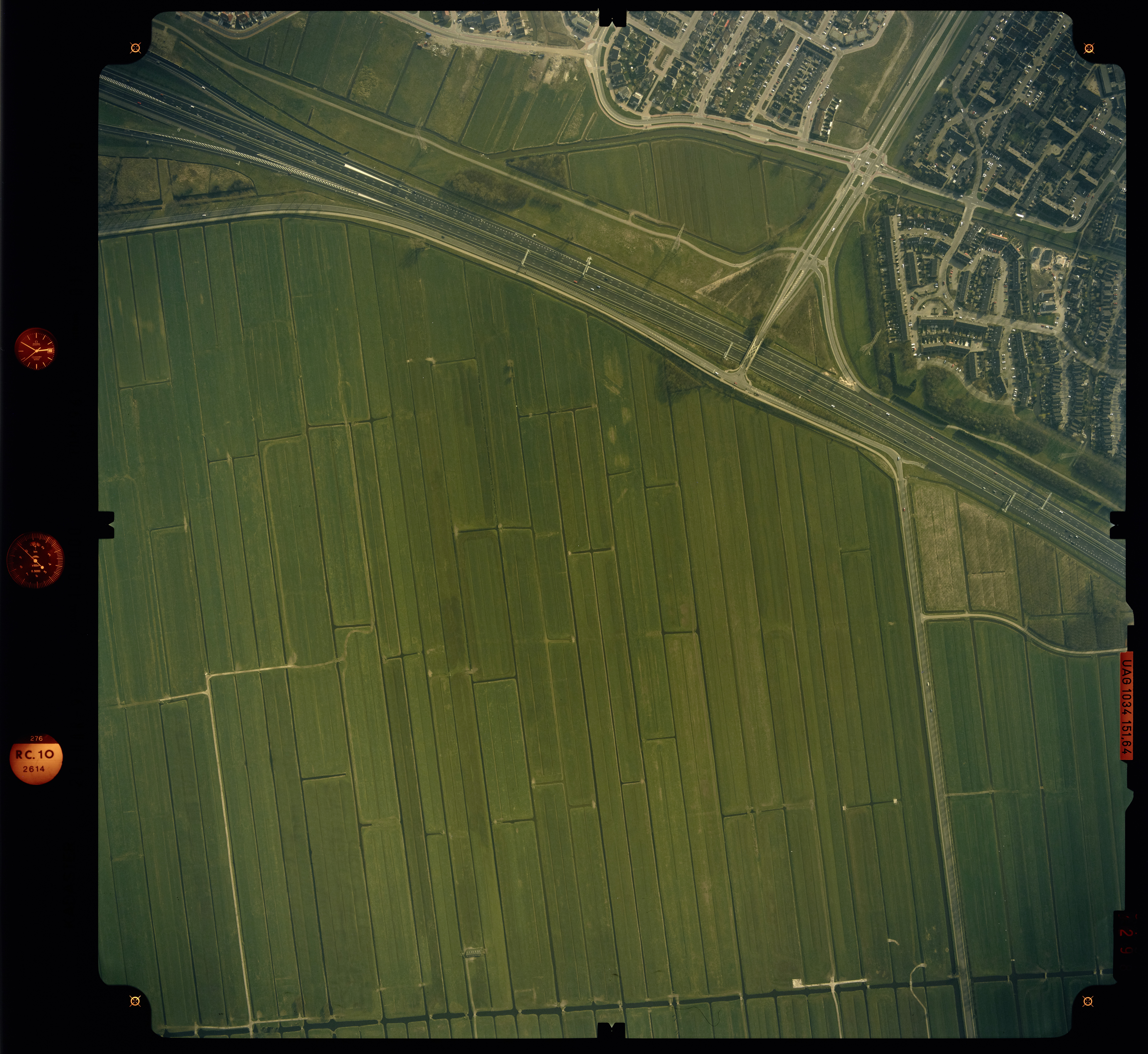 Luchtfoto Papendrecht 1993: Rechts onder naar boven Veerweg. Links boven naar Midden rchts A15. Rechts boven naar midden . Boven Kastanjelaan/Wieklaan gezien in zuidelijke richting.Veerweg