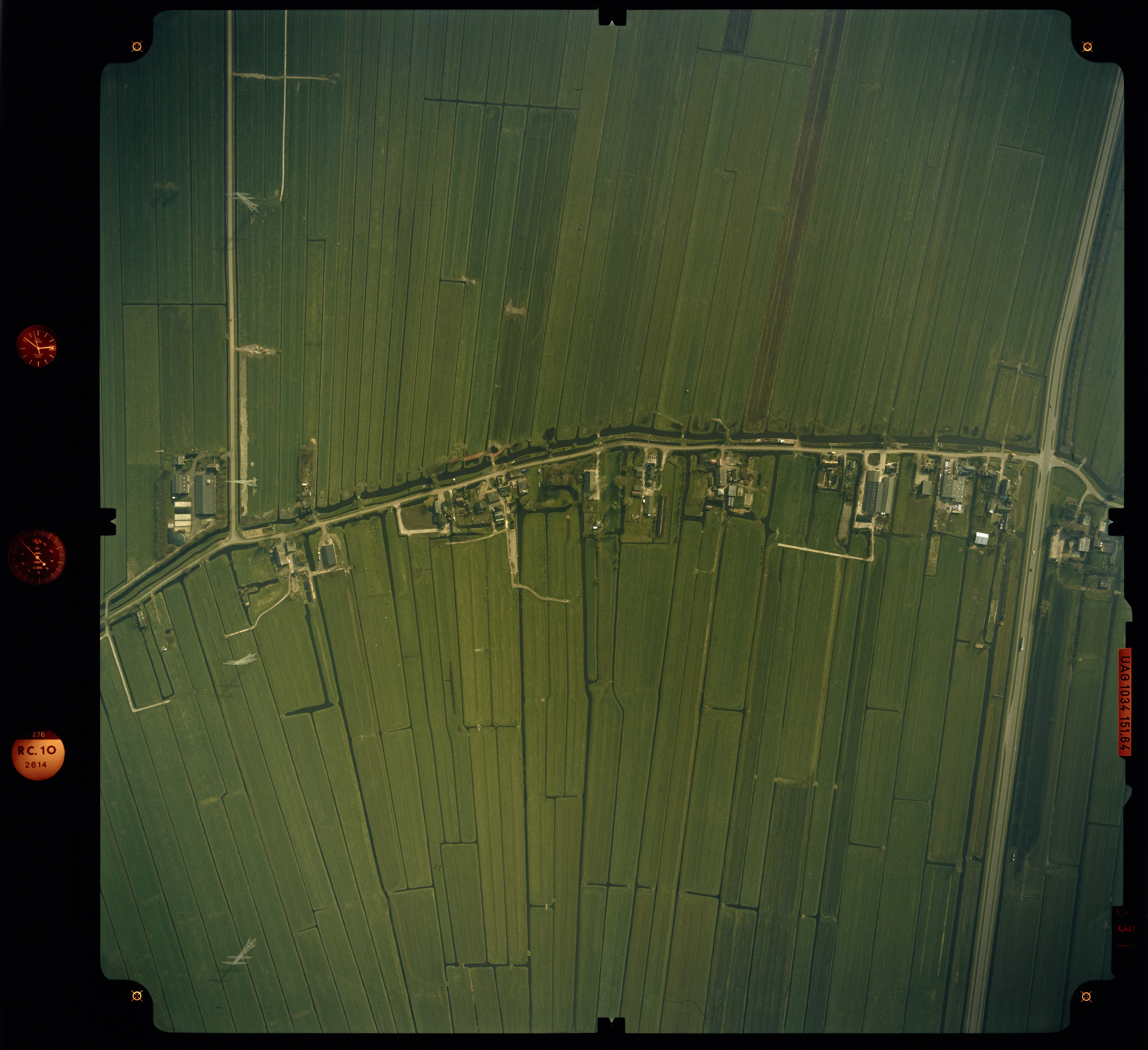 Luchtfoto Wijngaarden 1993: Rechts onder naar rechts boven Prov.weg N214. Midden links naar midden rechts Oosteinde. Links boven naar onder Zwijnskade. gezien in zuidelijke richting.