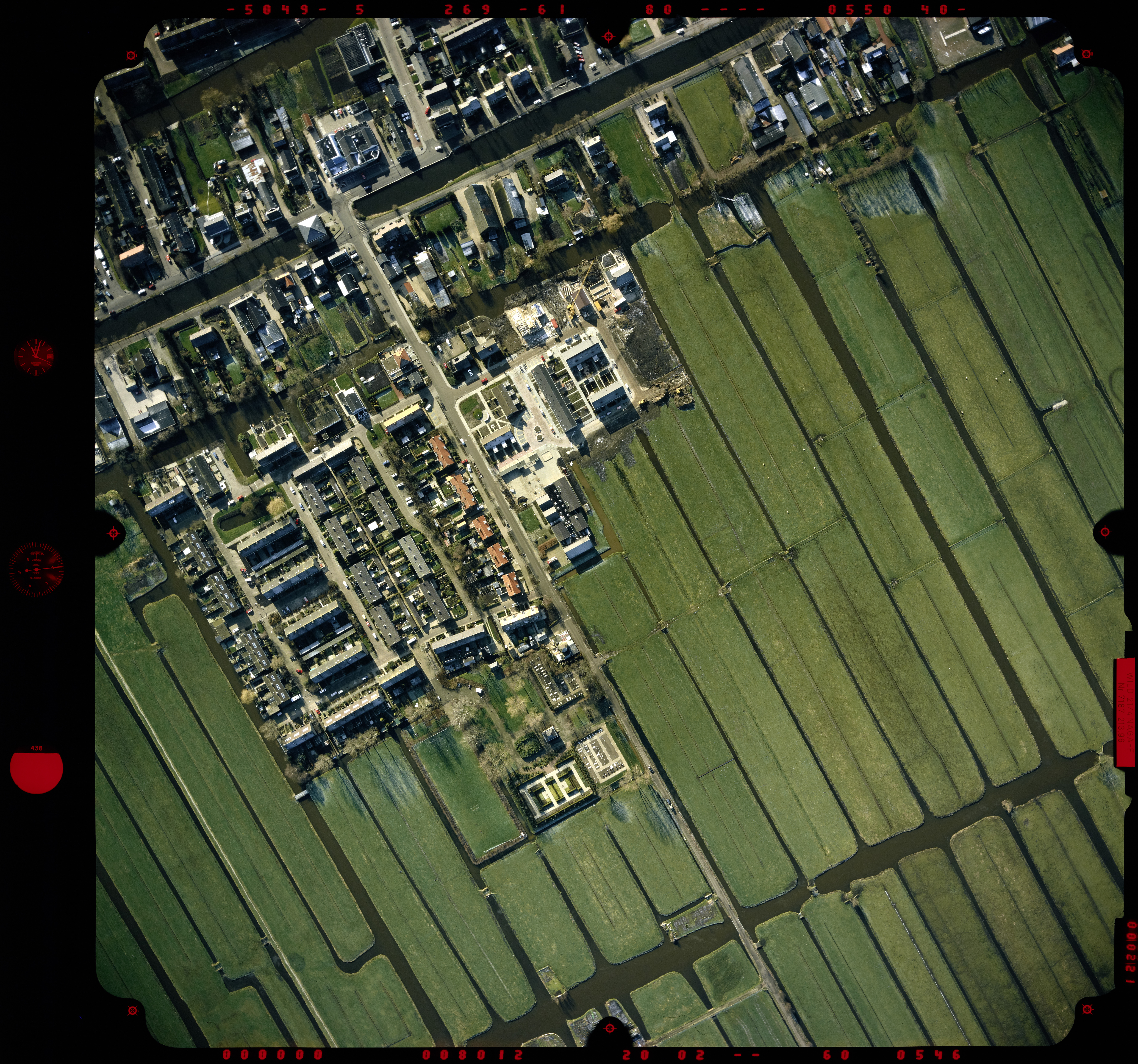 Luchtfoto Molenaarsgraaf 1993: Midden links naar Links boven Achterwetering. Midden onder naar boven Kerkweg. Midden boven naar links de Graafstroom met de Gijbelandsedijk er onder en Graafdijk oost/Molenbroek er boven. gezien in zuidelijke richting.