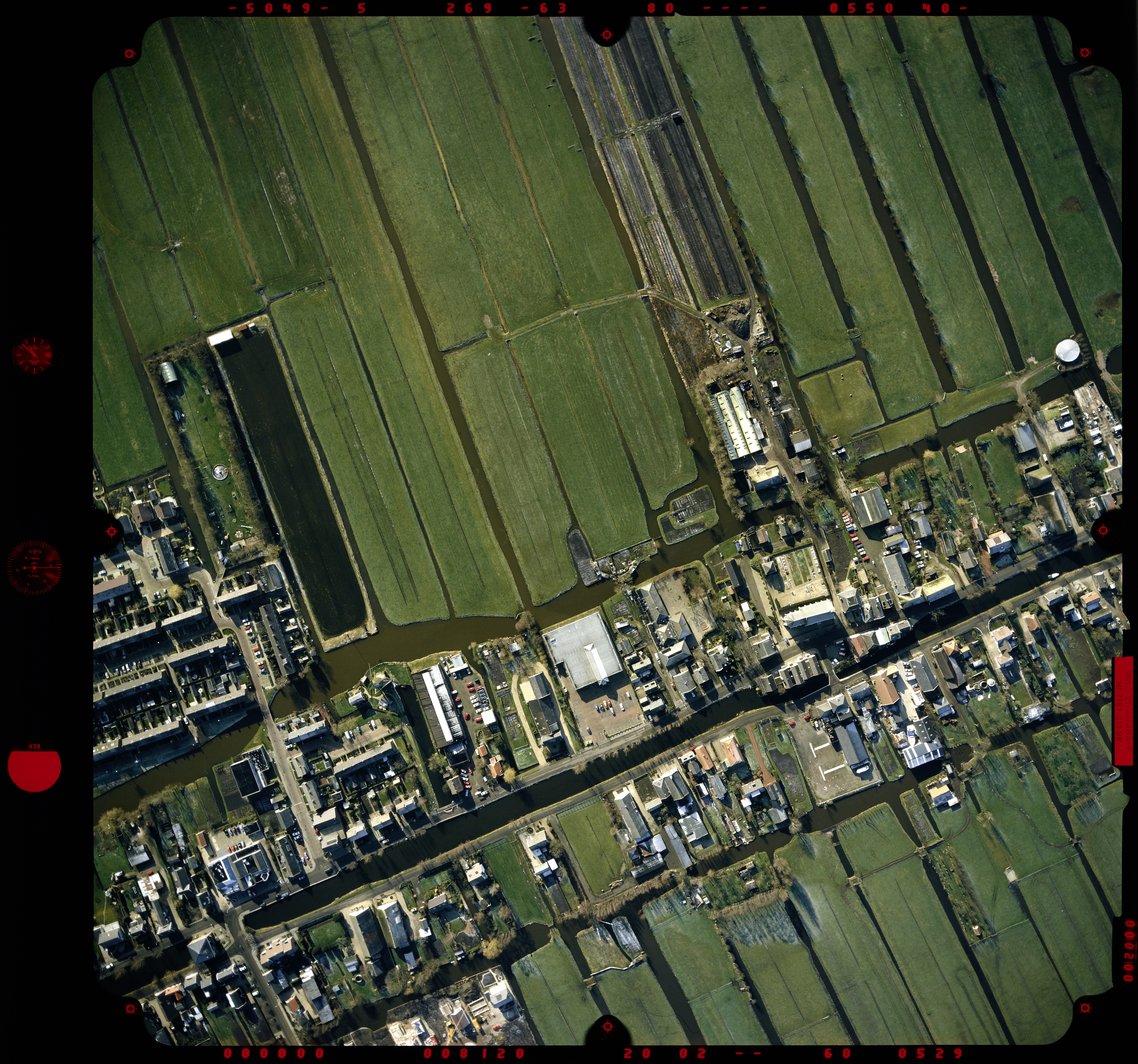 Luchtfoto Molenaarsgraaf/Brandwijk 1993: Midden boven Kerkepad. Links onder naar midden boven de Graafstroom met de Dorpsstraat er boven en Gijbelandsedijk er onder. Links onder Nieuwe Dam. gezien in zuidelijke richting.