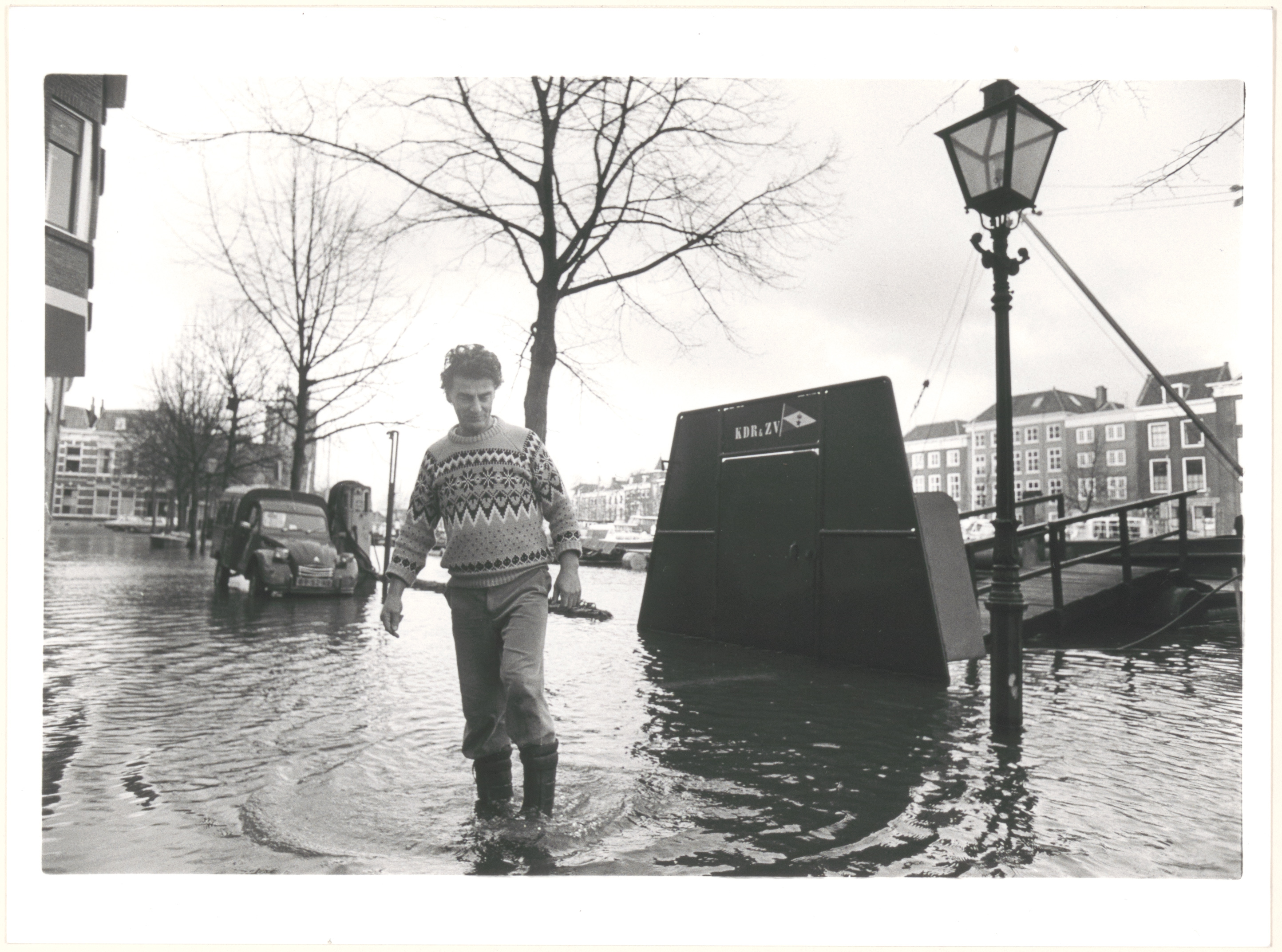 - Hoogwater op de Knolhaven. Rechts de Nieuwe Haven.
