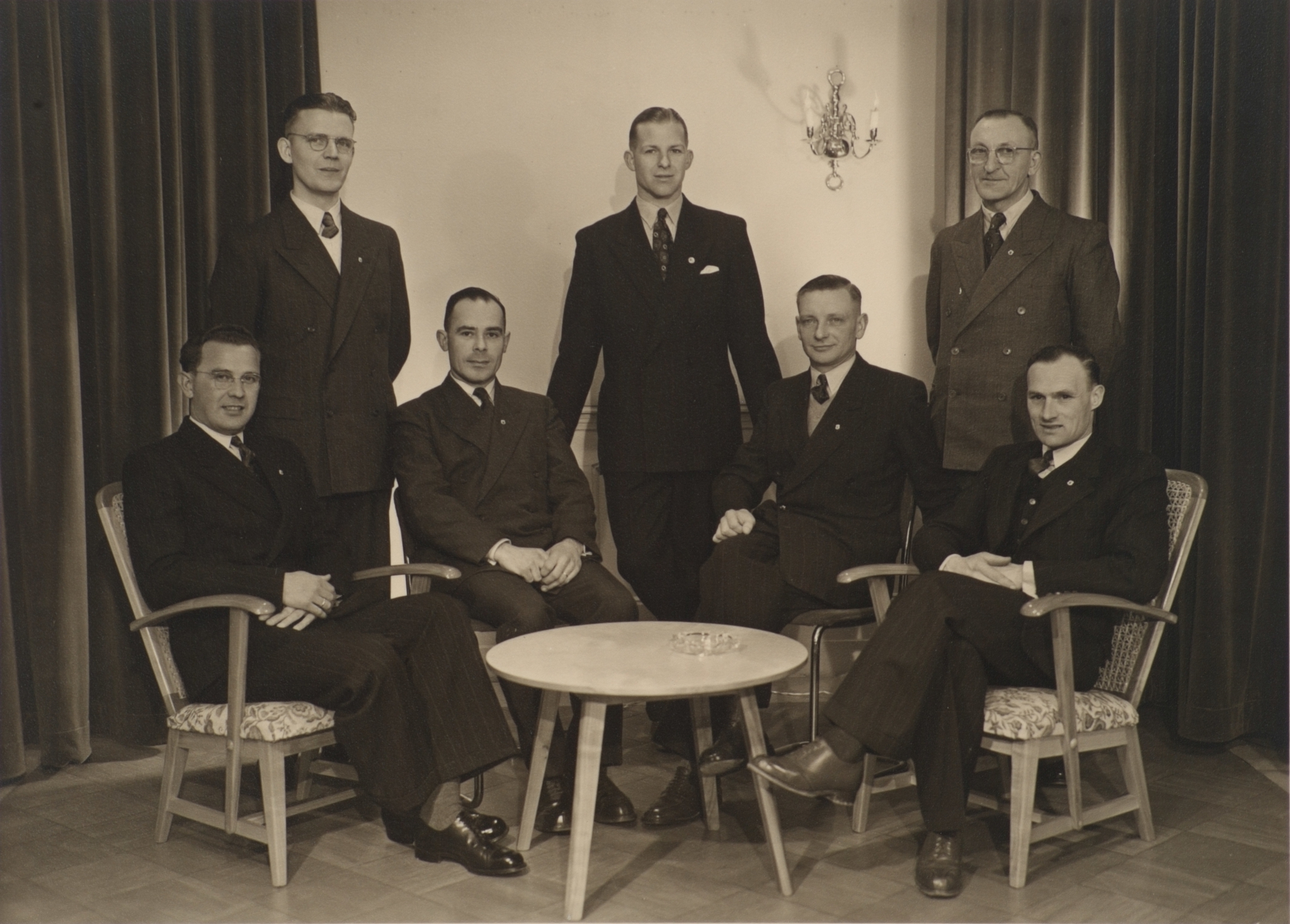 Bestuur van voetbalvereniging O.D.S. bij het 40-jarig jubileum in 1951. Staande …