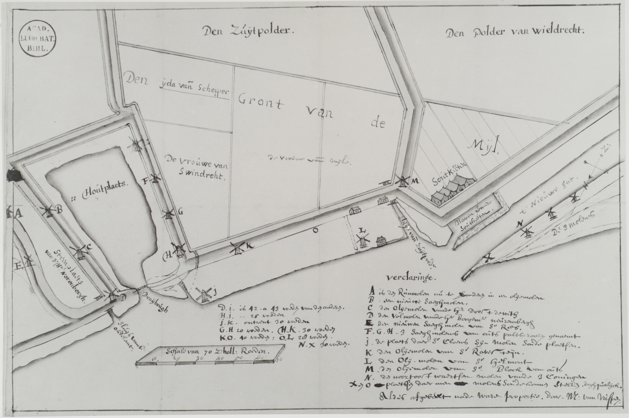 - Detail van een kaart van Van Nispen uit de collectie Bodel Nijenhuis U.B. Leiden