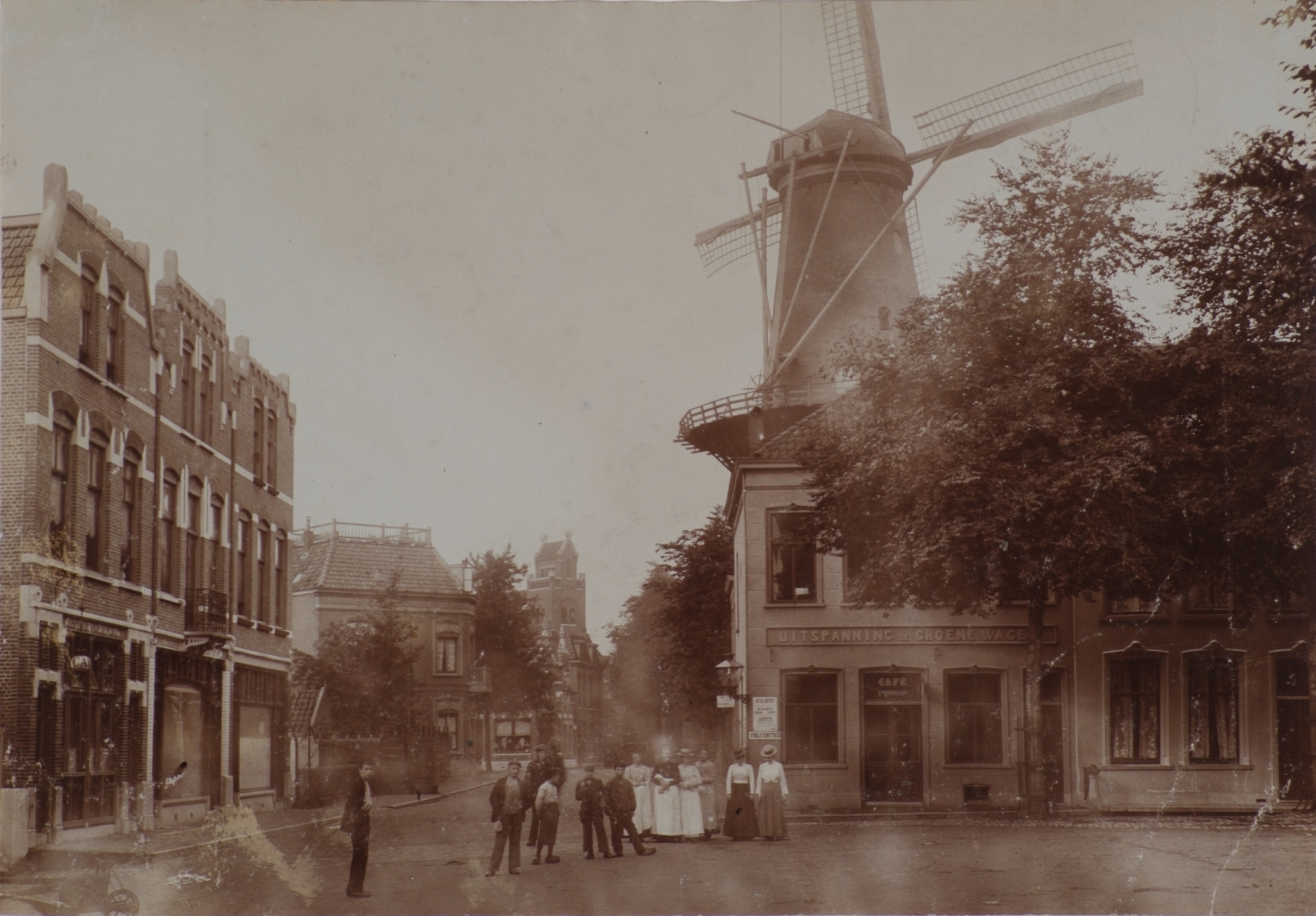 - Vrieseplein en Cornelis de Wittstraat gezien naar de Blekersdijk; op de achtergrond molen De Maagd