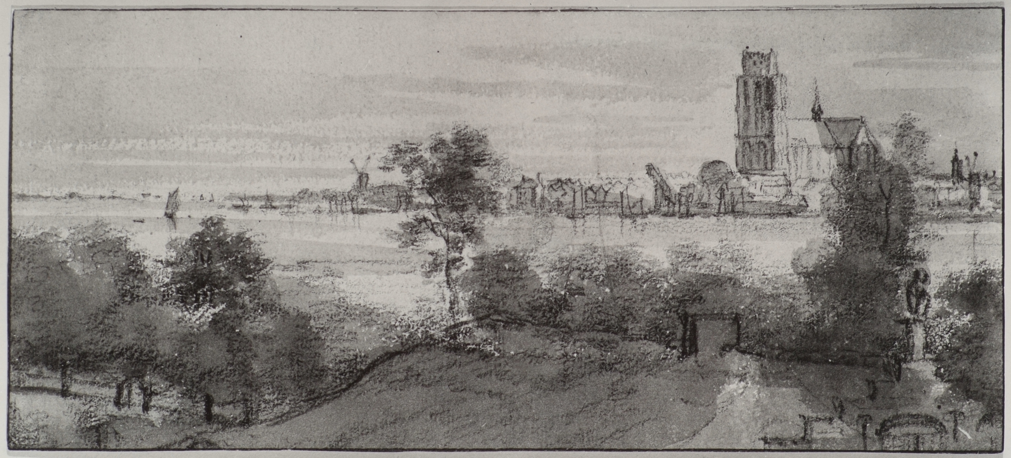 Gezicht op Dordrecht, krijttekening door Roeland Roghman