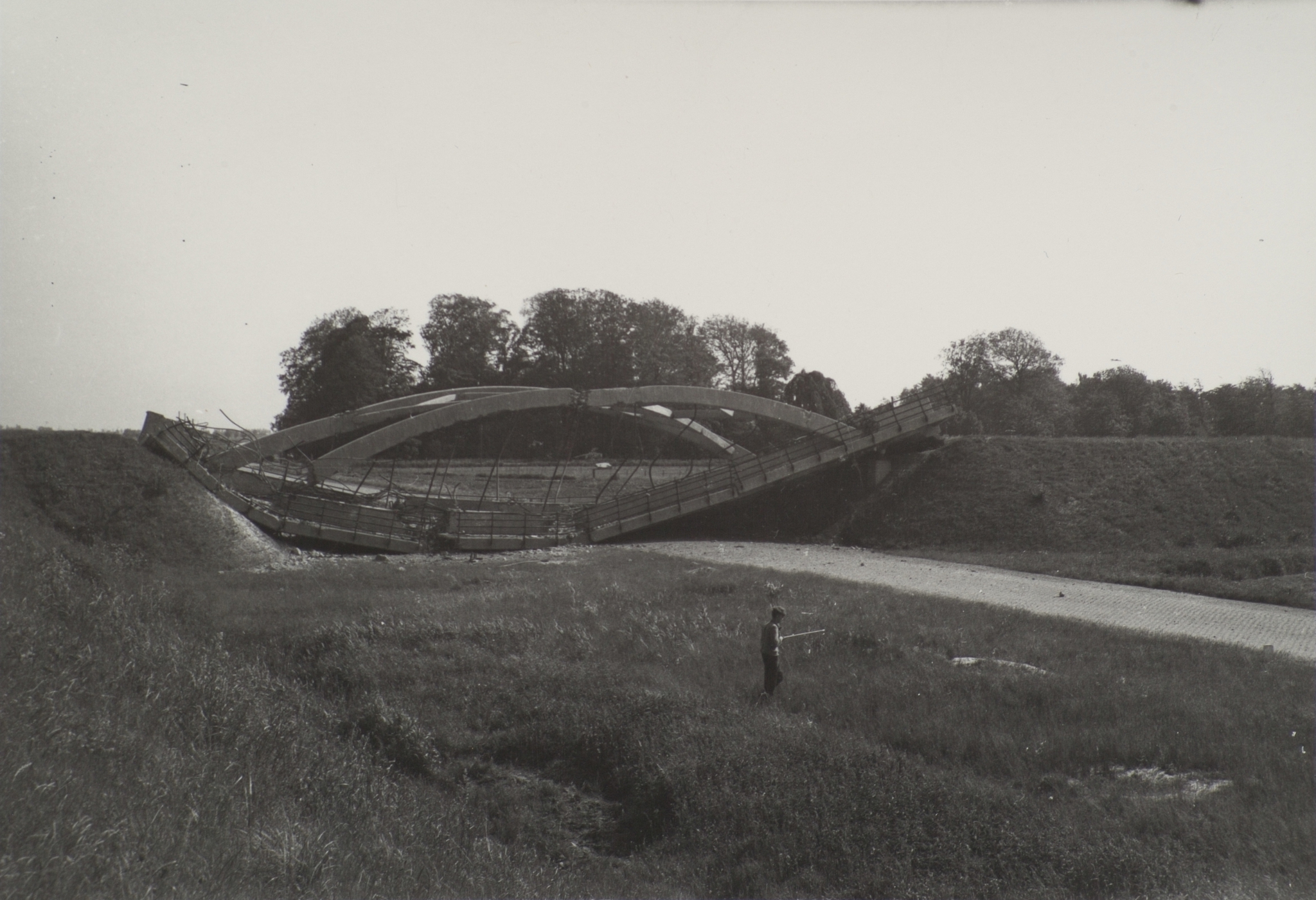 Verwoest viaduct nabij Amstelwijck, in de achtergrond de bomen van Amstelwijck