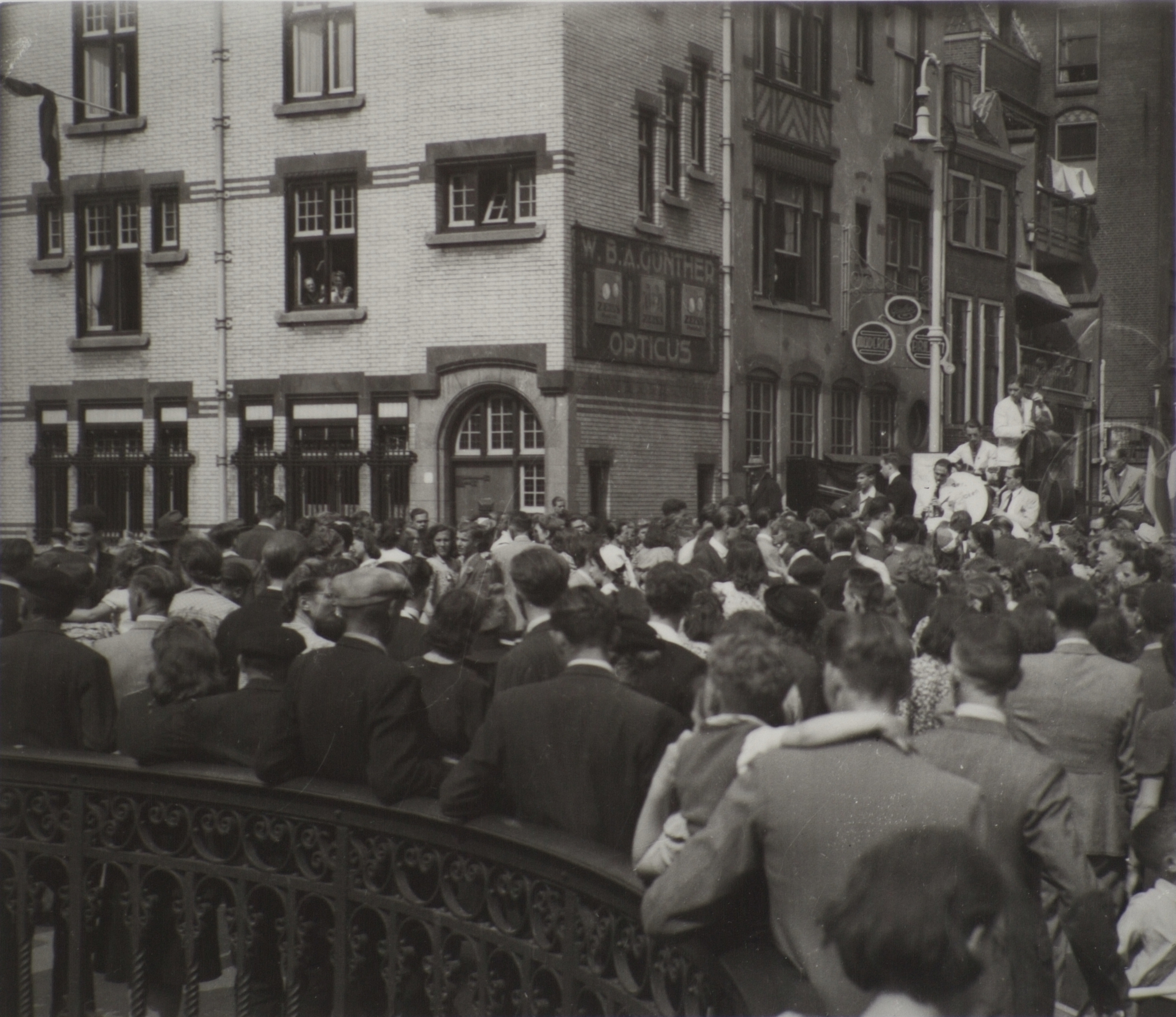 - Muzikanten op de Visbrug ter gelegenheid van de bevrijding