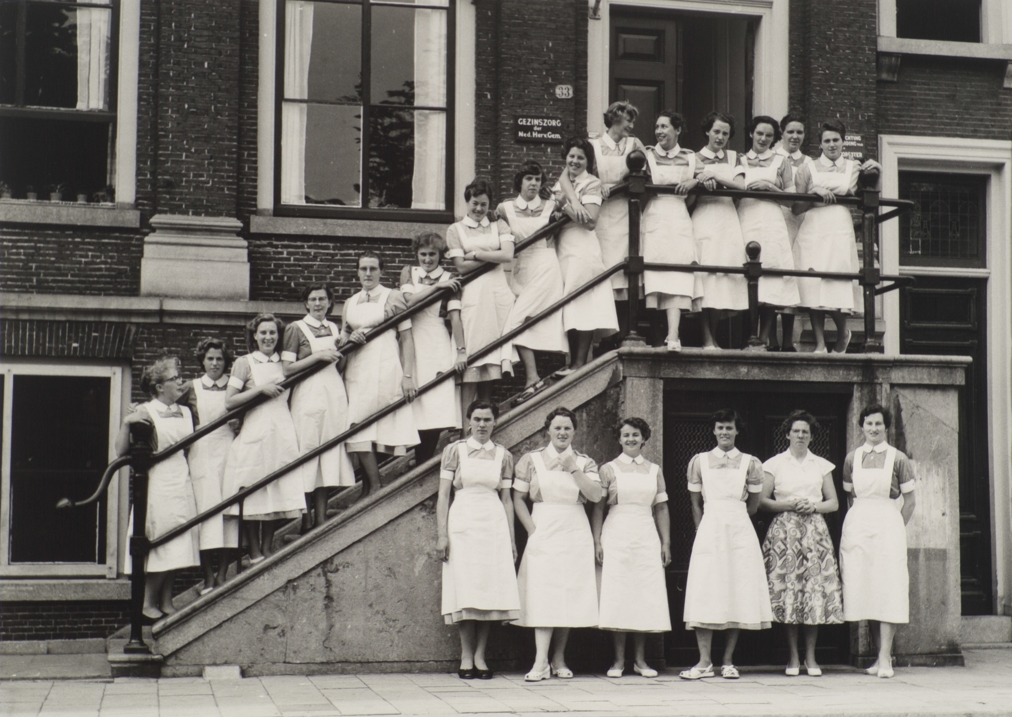 - groepsportretten leerlingen / scholieren personeel / werknemers scholen verpleegsters