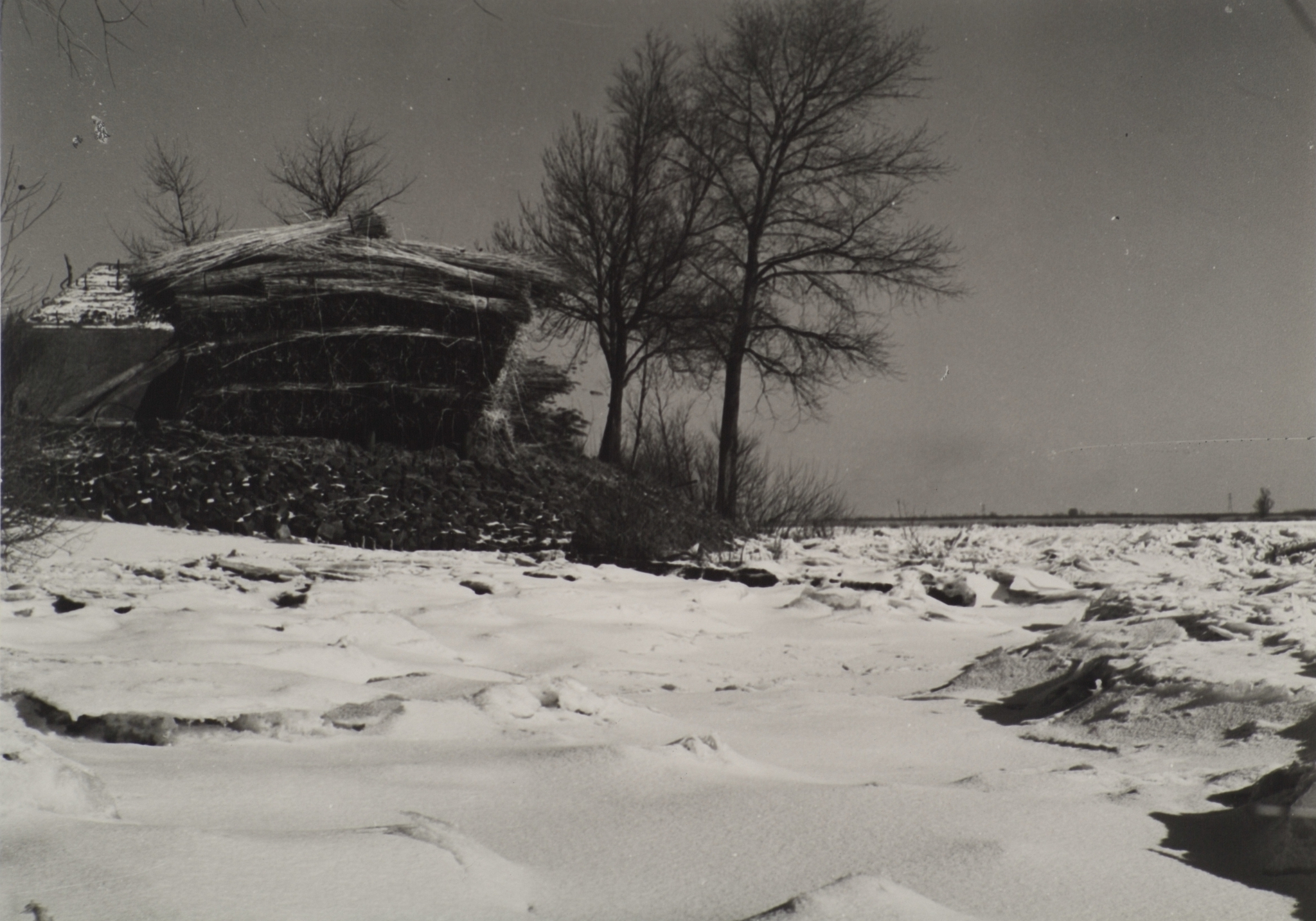 - Een besneeuwde rietschelf ergens aan de Nieuwe Merwede