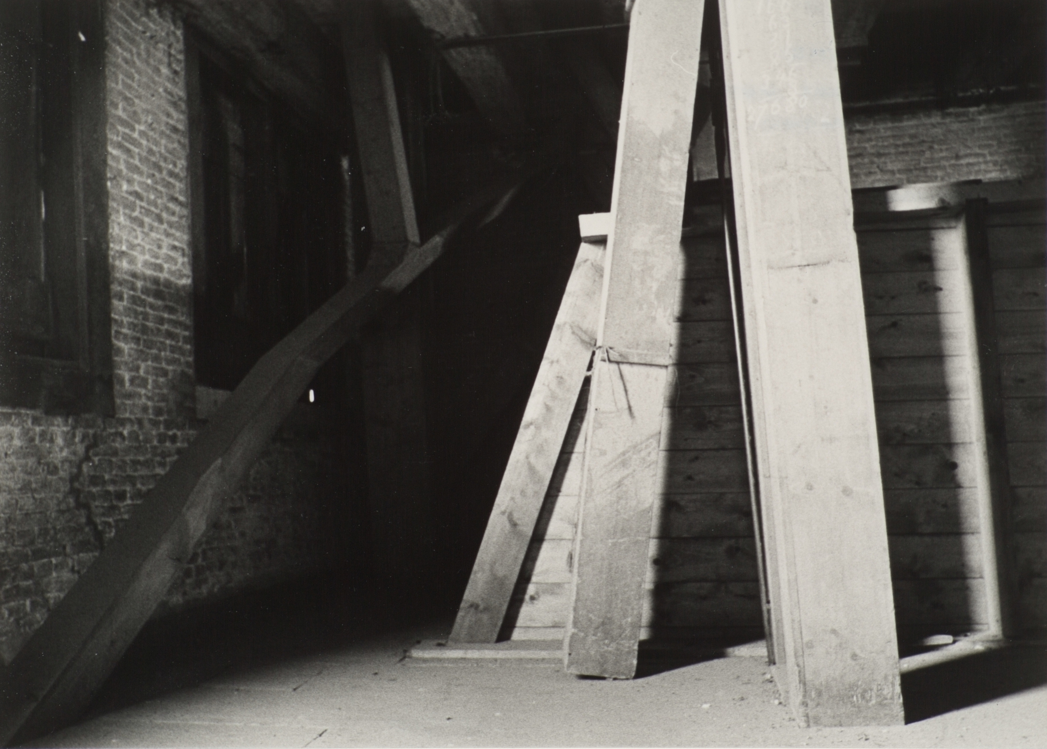 Houten kokers met transportbanen op de tweede verdieping van pakhuis Stokholm aan de …