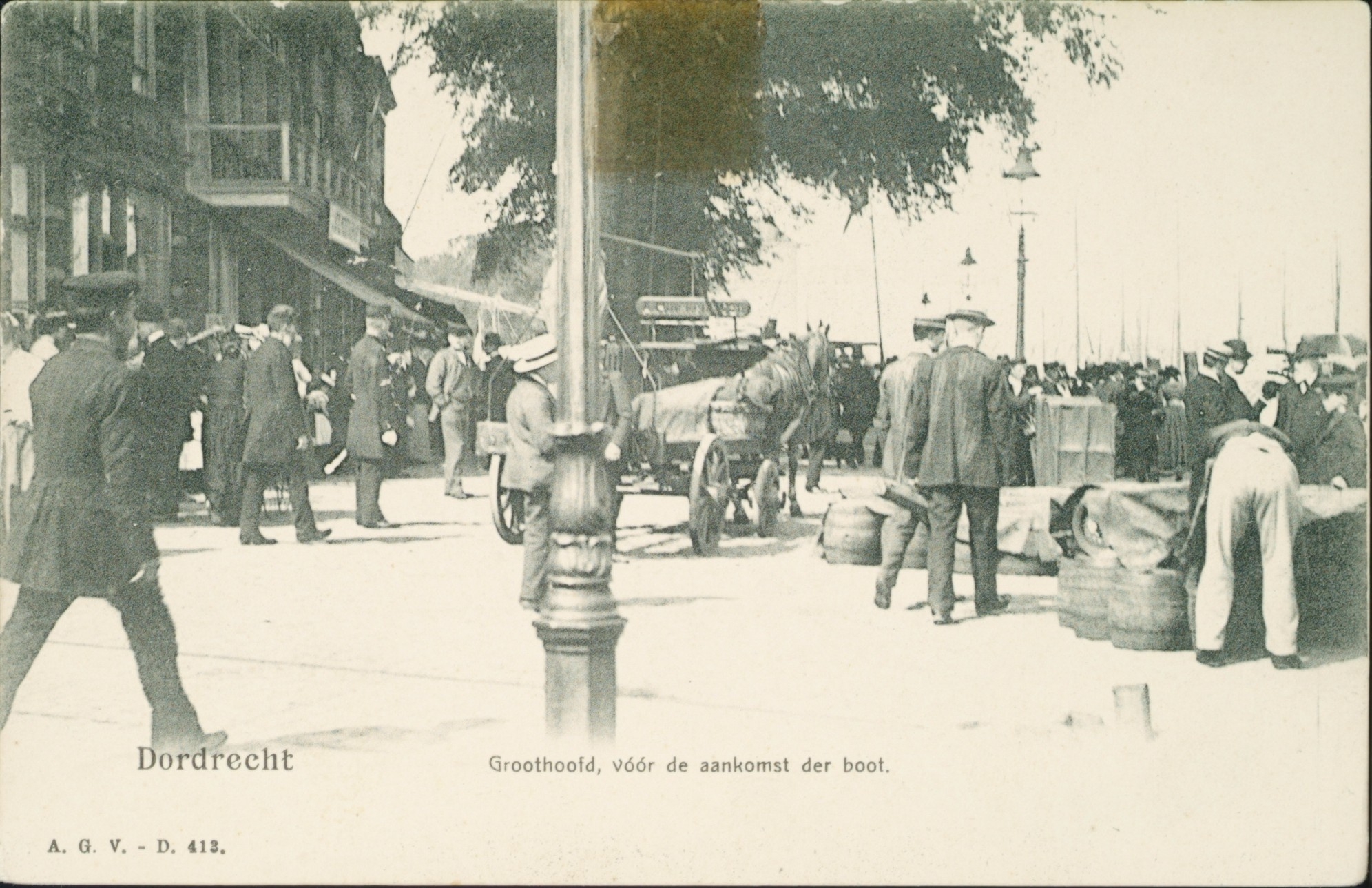 Foto, genomen van de drukte op de kade voor de aankomst van het schip, waarschijnlijk van Fop Smit & Co.
