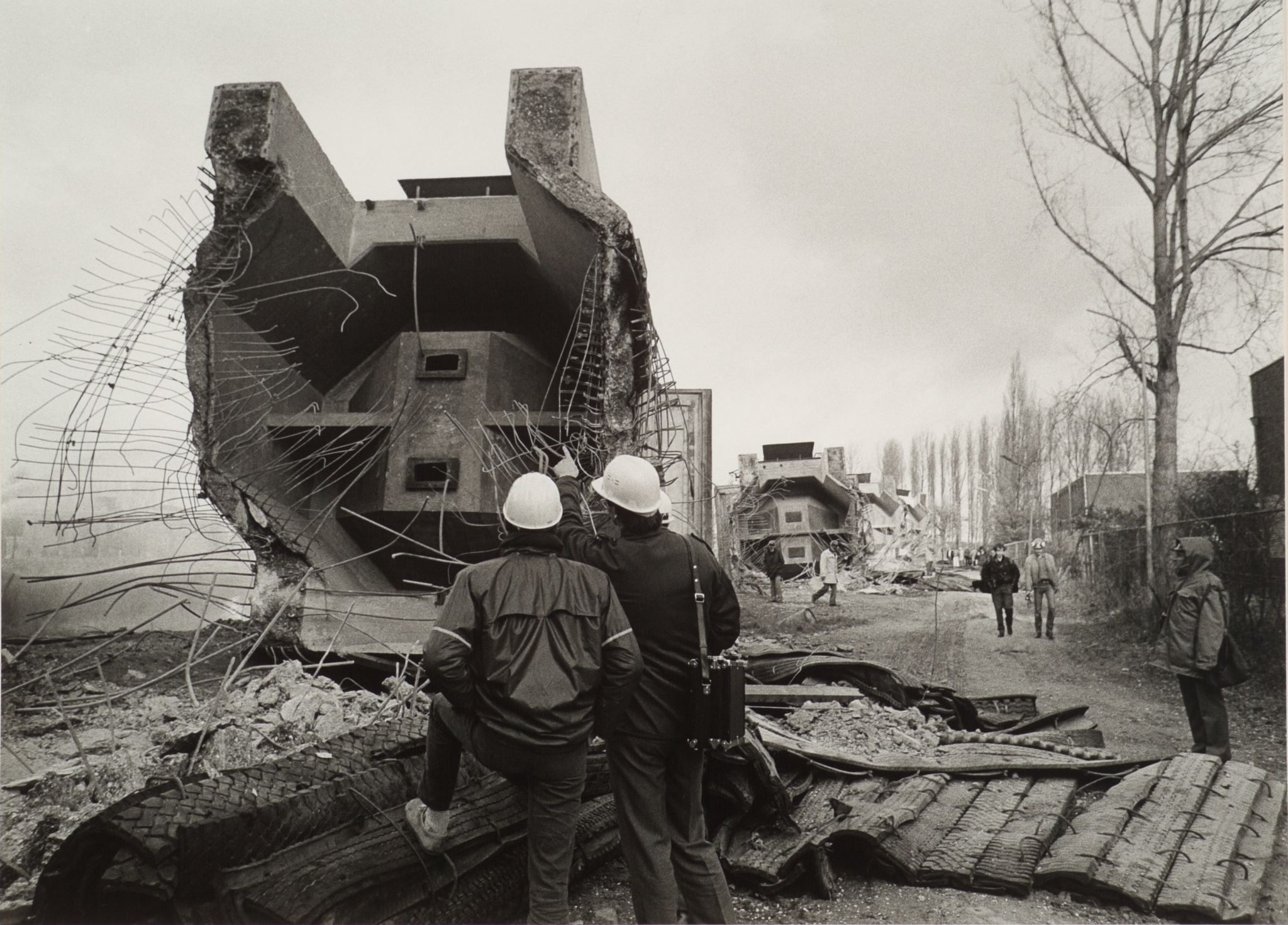 Inspectie van de onderkant van de gesloopte schoorstenen van de Merwedecentrale