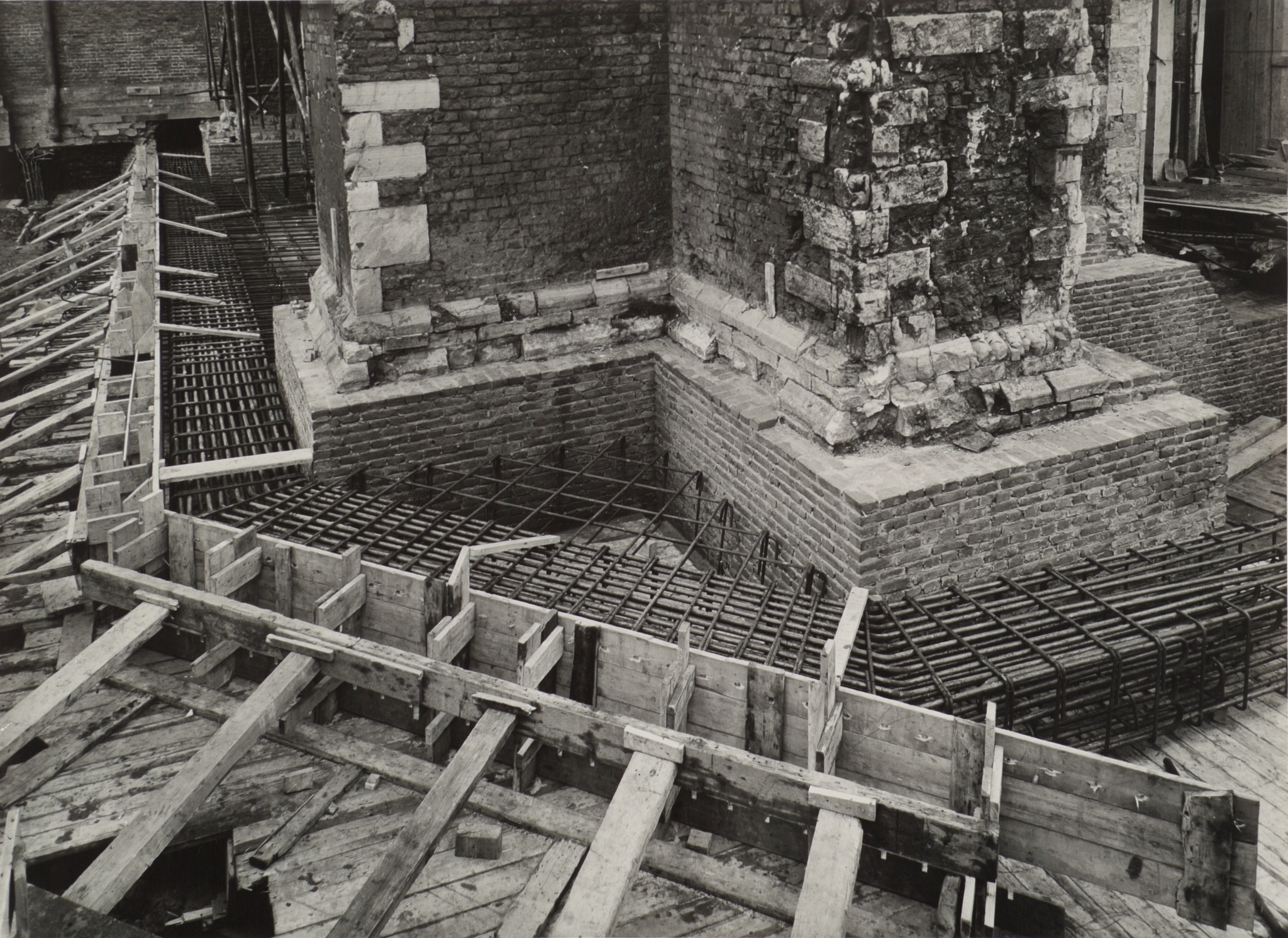 - Het stellen van de bewapening voor de verstevigingsring welke even onder het maaiveld om de bouwvallige toren van de Grote Kerk werd gelegd op de noord-westelijke hoek
