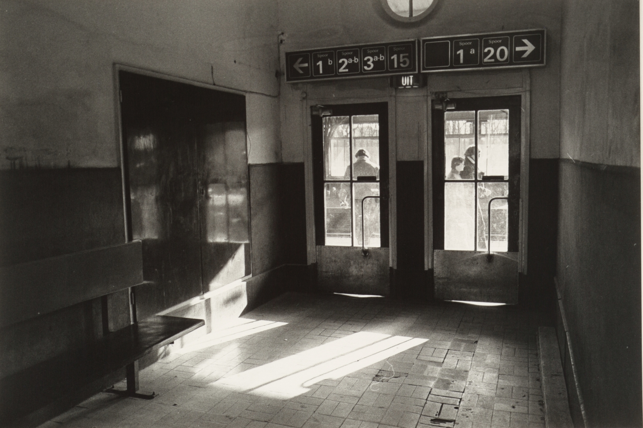 Gezicht op de deuren van de stationshal naar het eerste perron